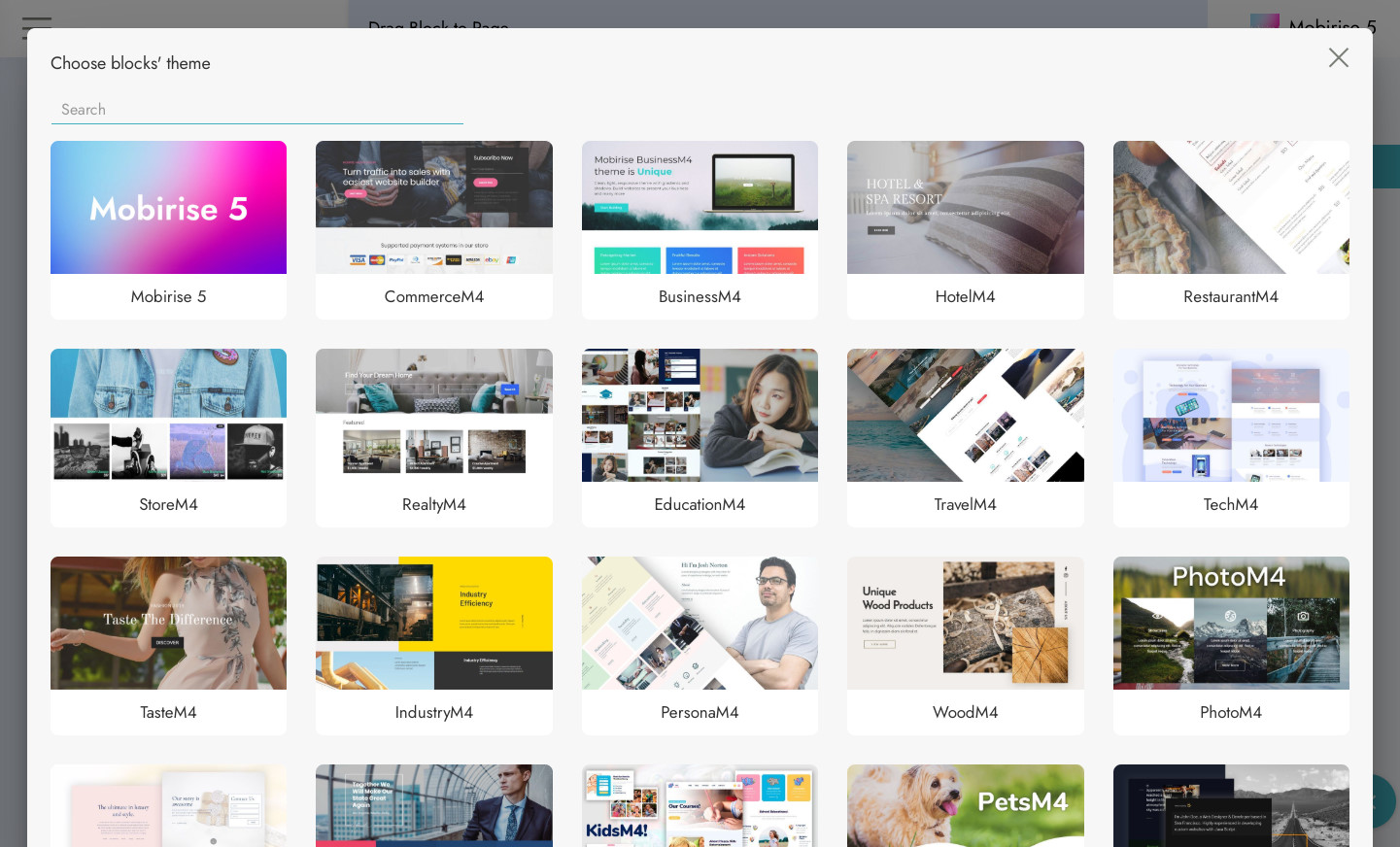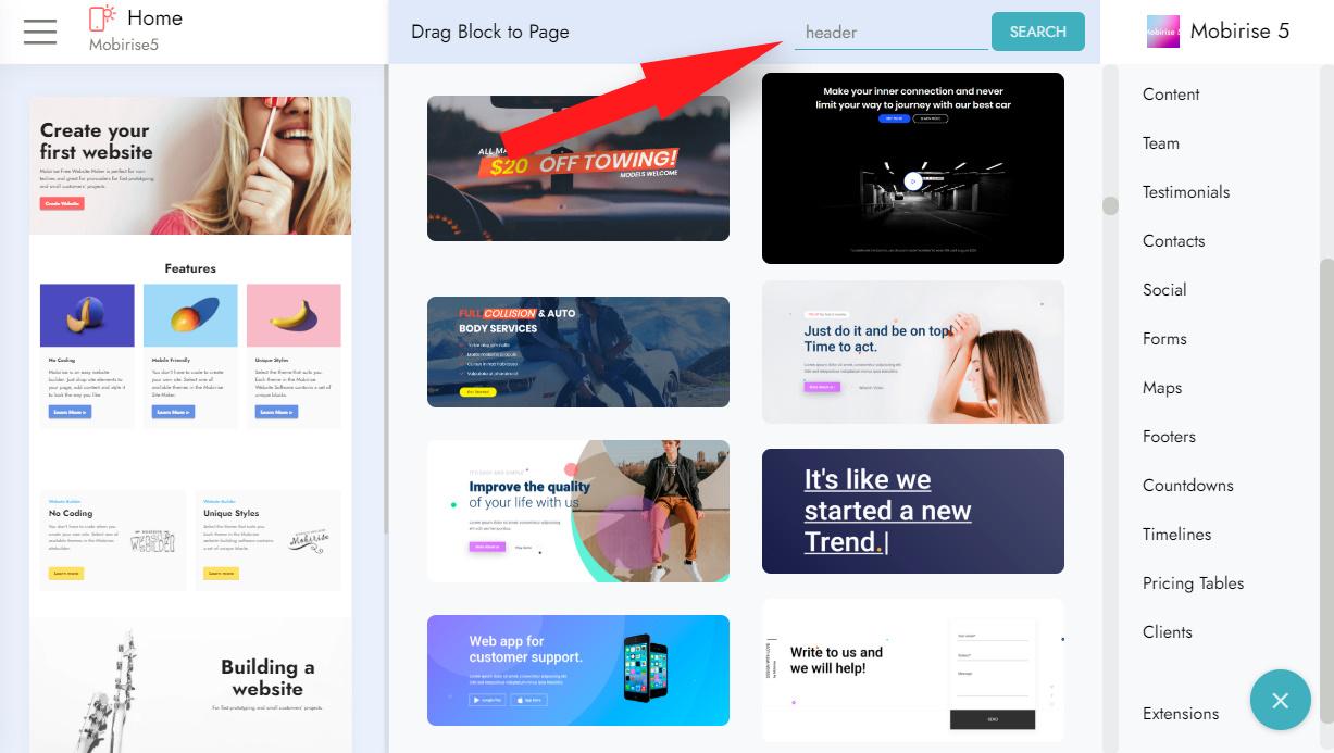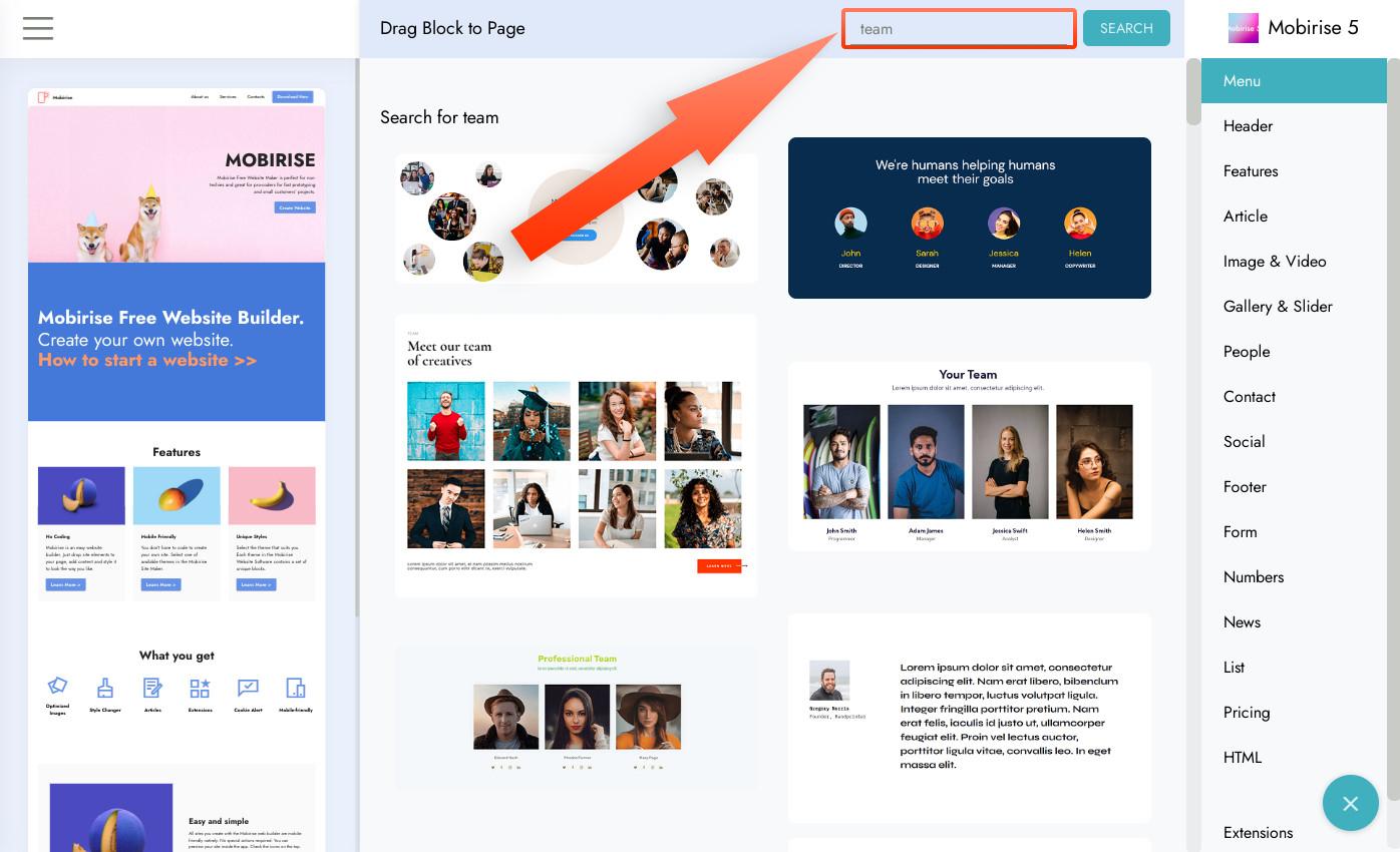 - 搜索所有 Mobirise 区块
