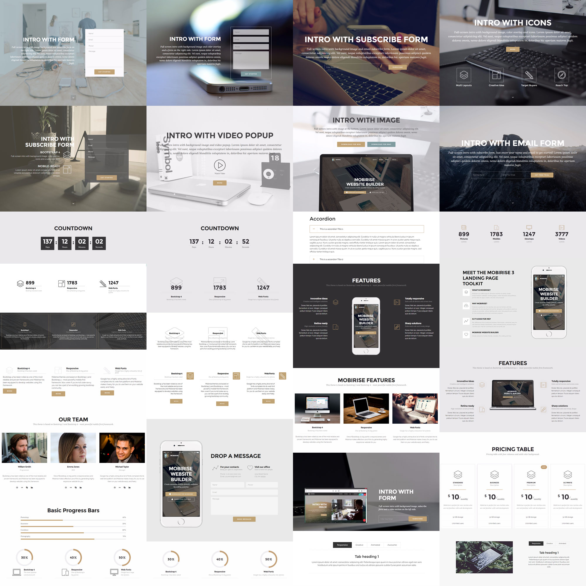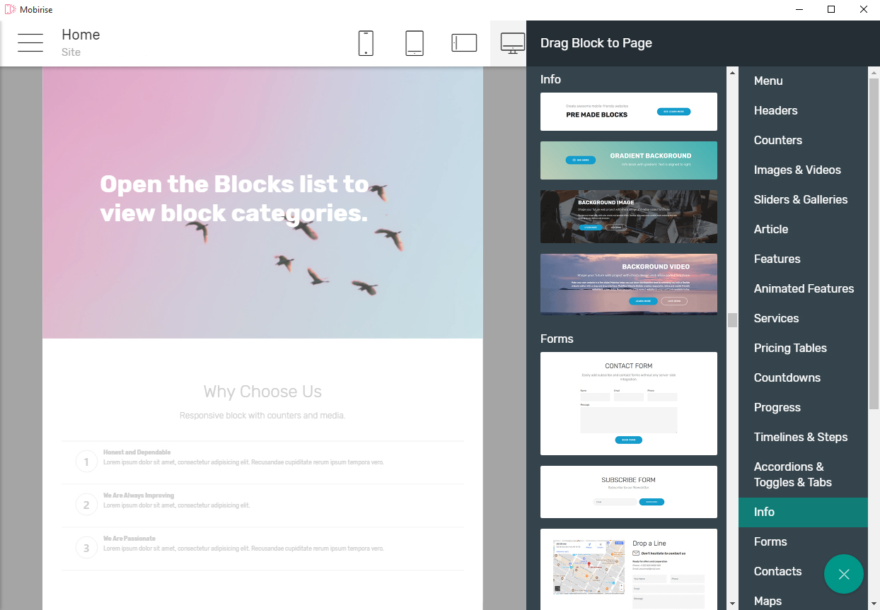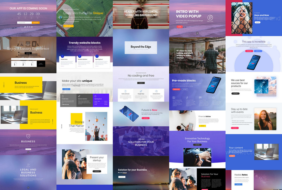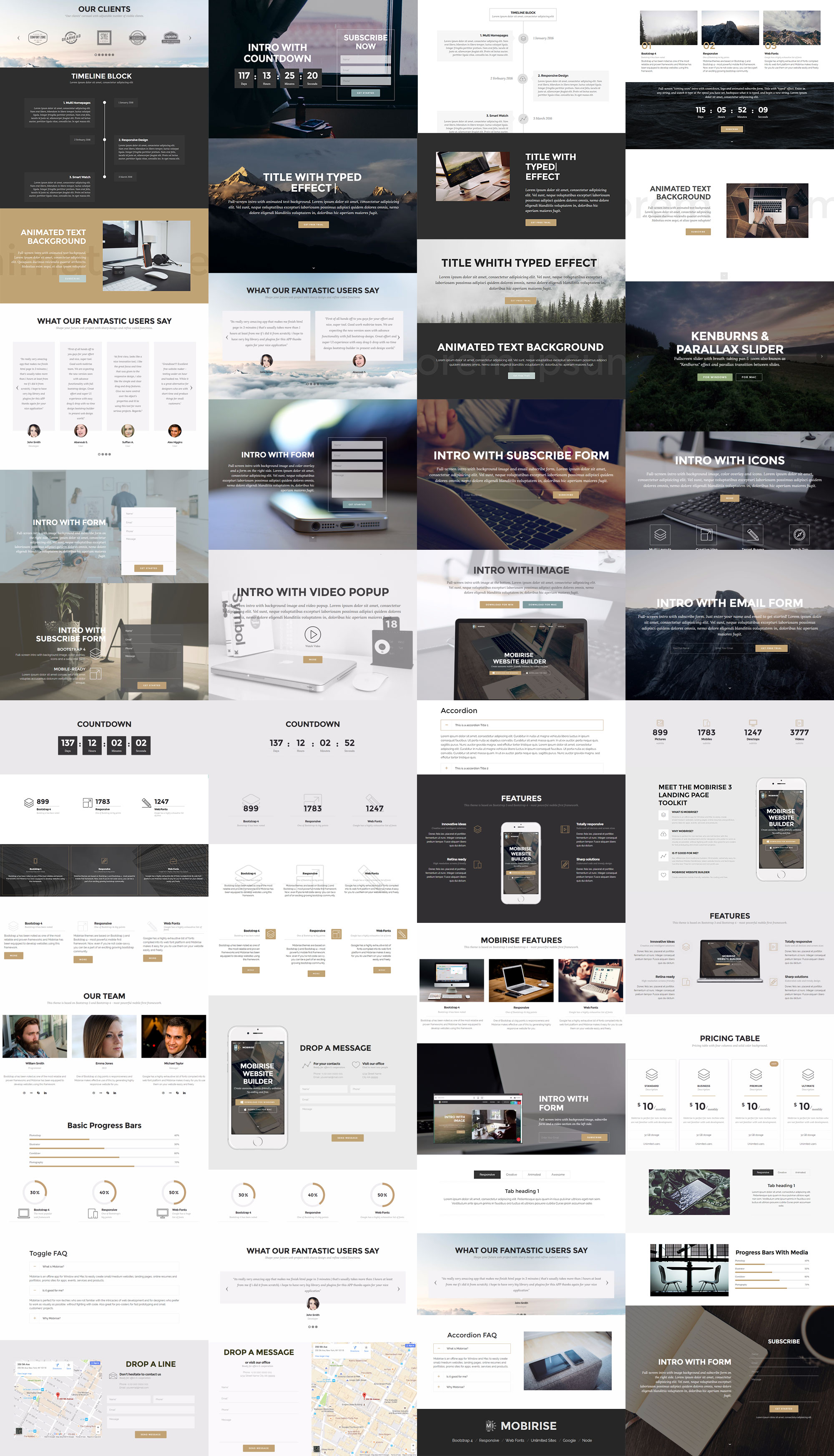 Mobirise 为网站开发者提供了日益丰富的现代化区块库,这些区块可以部分或全部应用于通过该构建器开发的每个网站。