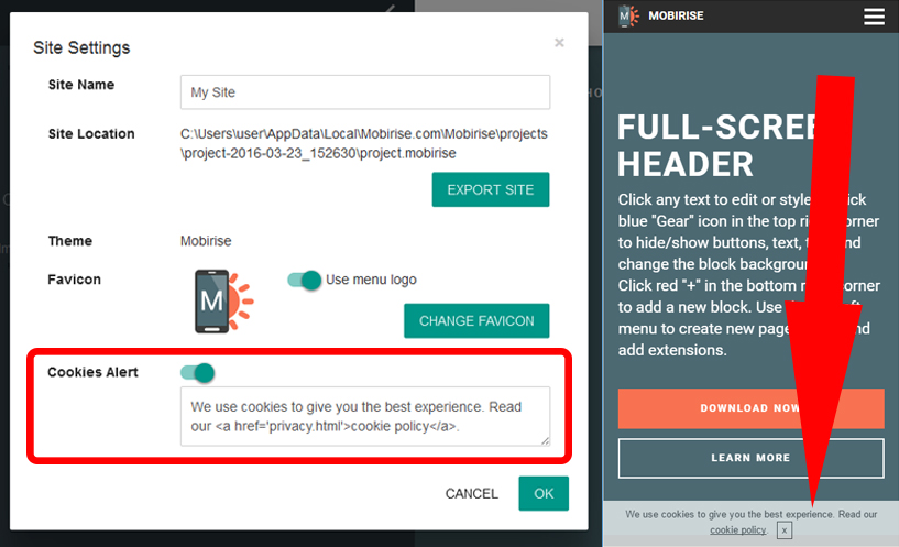 Mobirise 网站构建器 v2.8.5 的新功能: