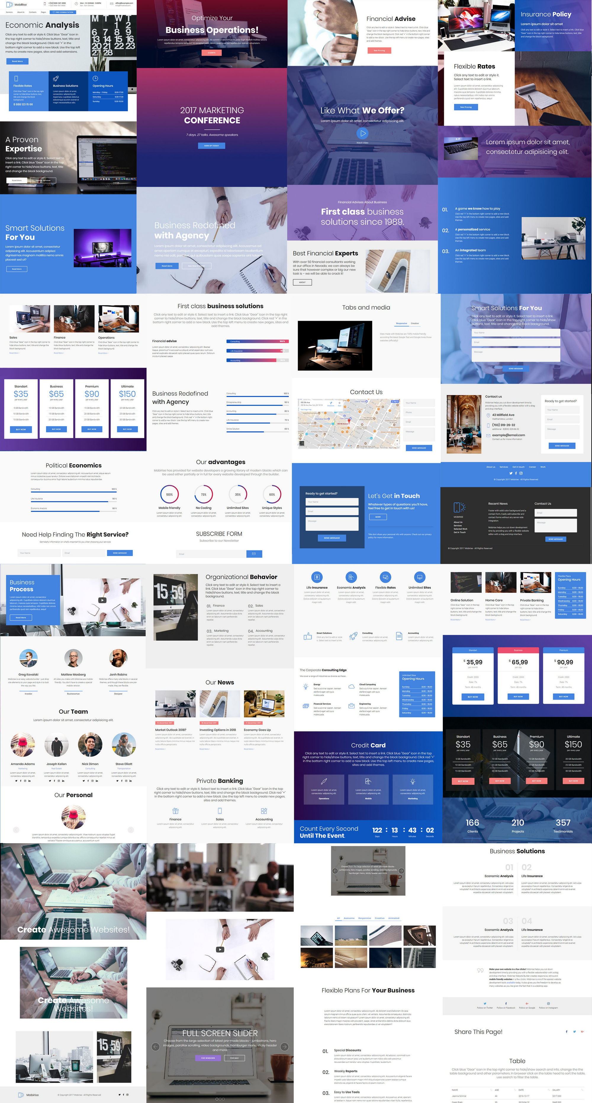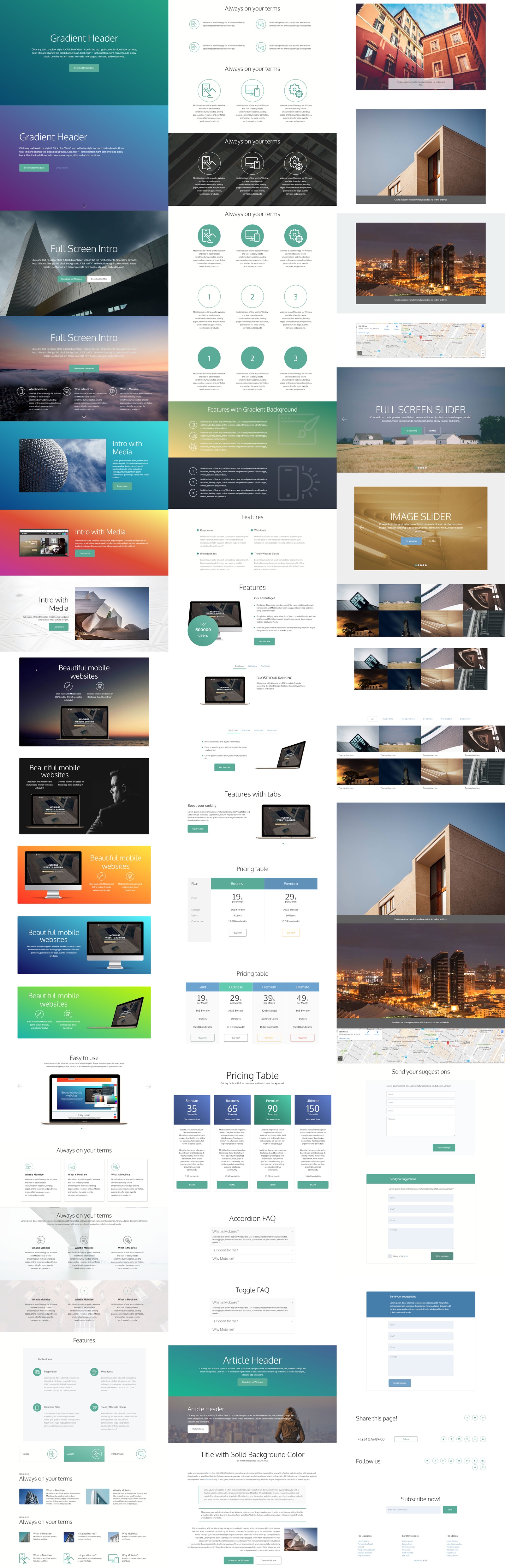 Mobirise 为网站开发者提供了一个不断丰富的现代化区块库,这些区块可以按需部分或完整地应用于通过该工具开发的每一个网站。