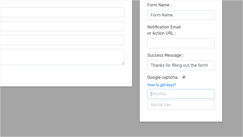 - 表单区块支持邮件通知,无需任何服务器端集成。只需在参数中输入您的邮箱地址,即可即时接收提交信息。