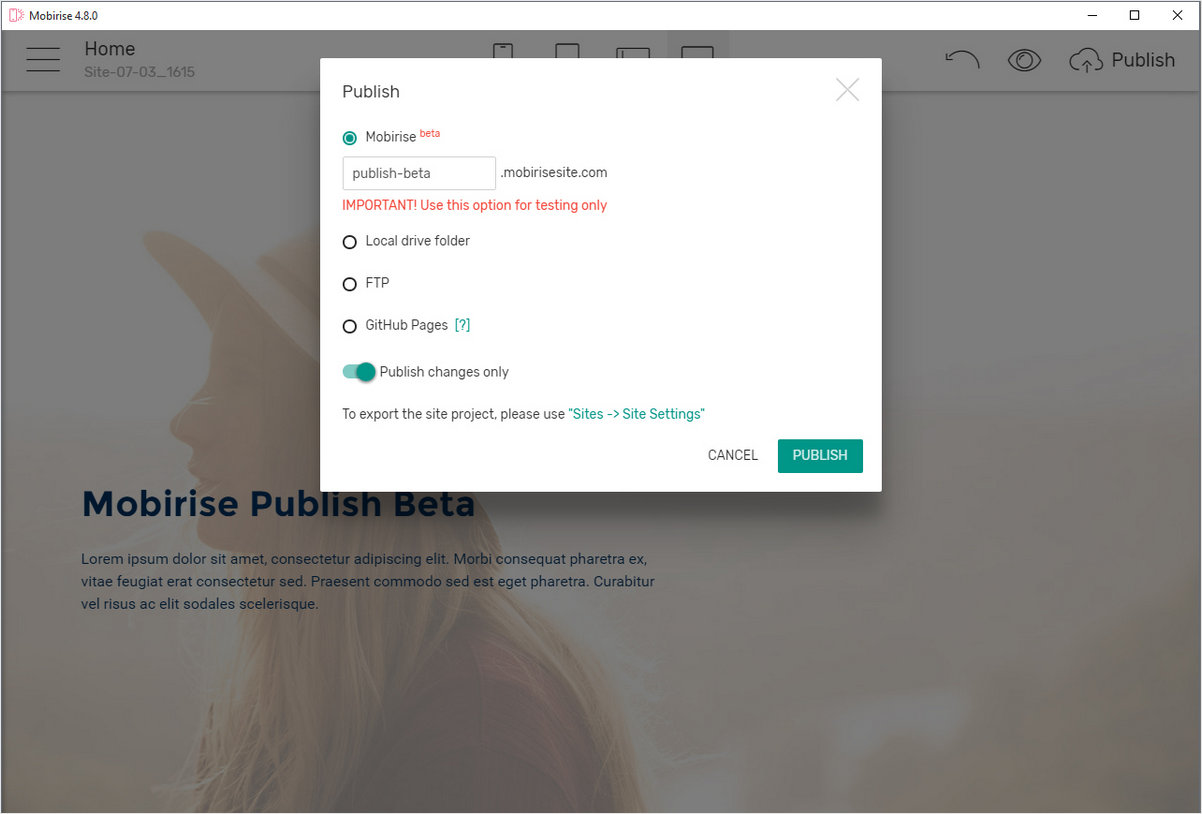 - Mobirise 站点发布:修复了克隆项目发布时的问题。