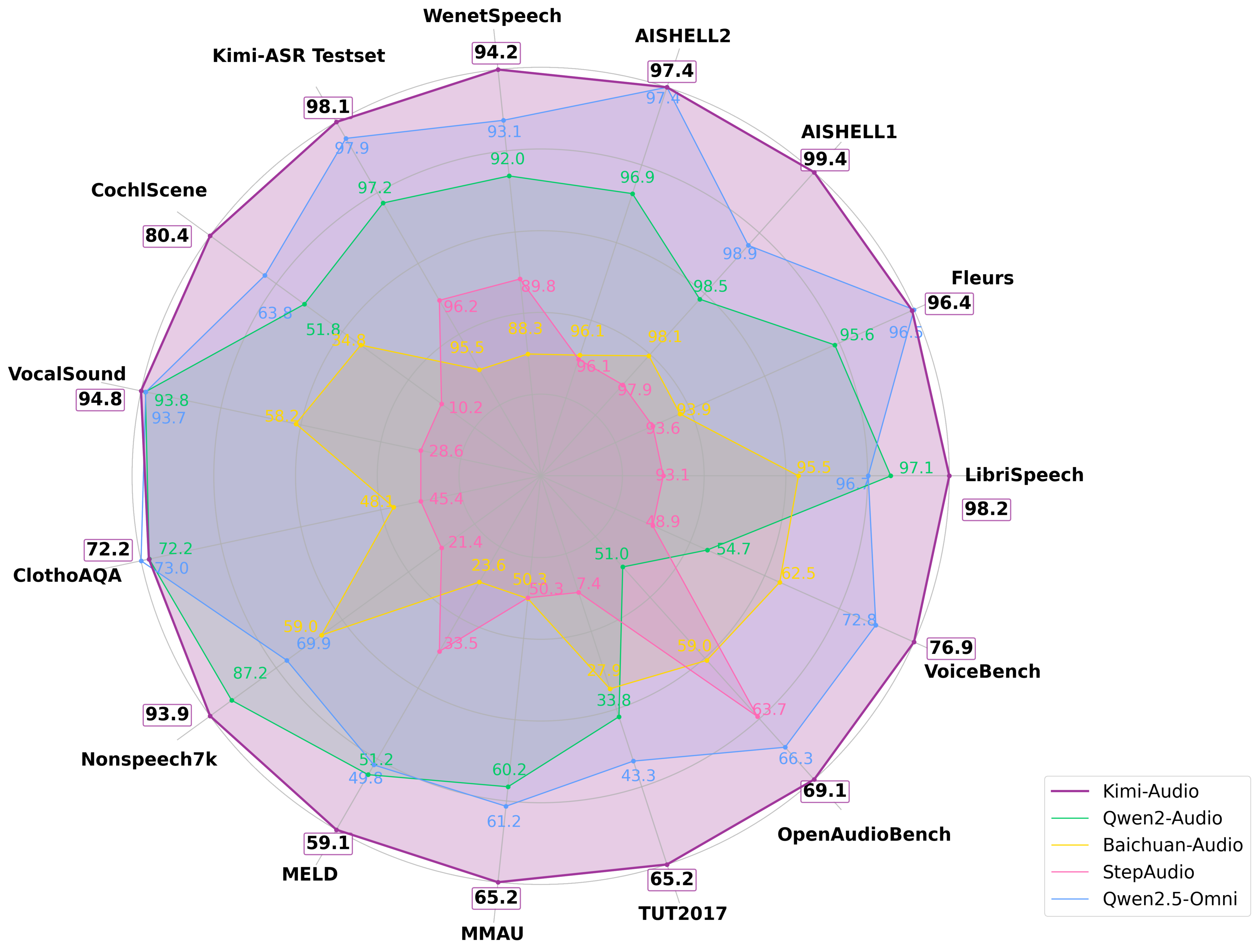 | Kimi-Audio | 83.52 | 61.10 | 100.00 | 76.93 |