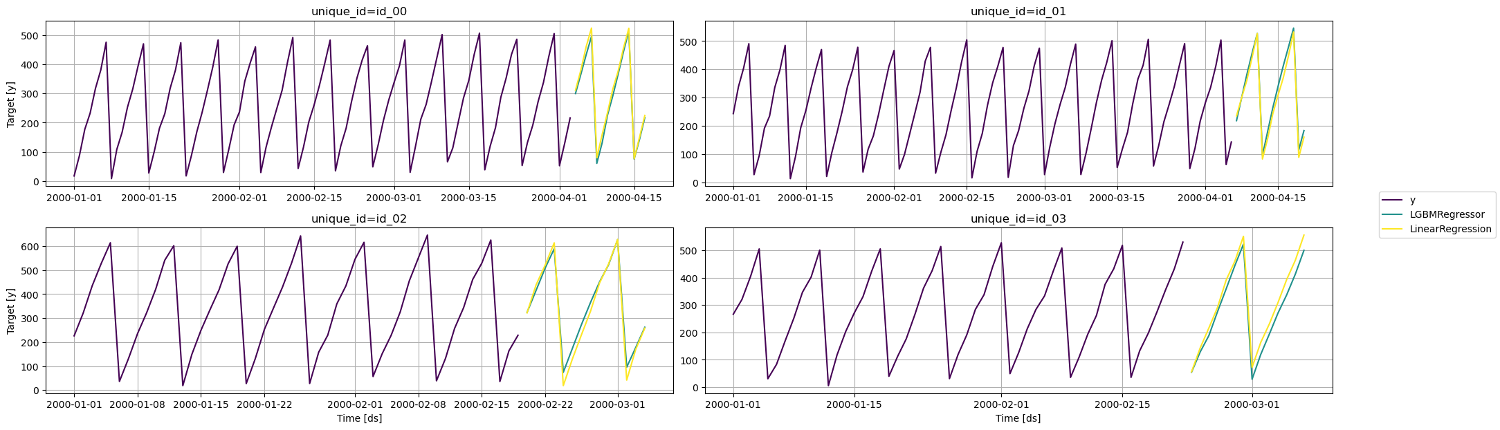 | unique_id | ds | LGBMRegressor | LinearRegression | |