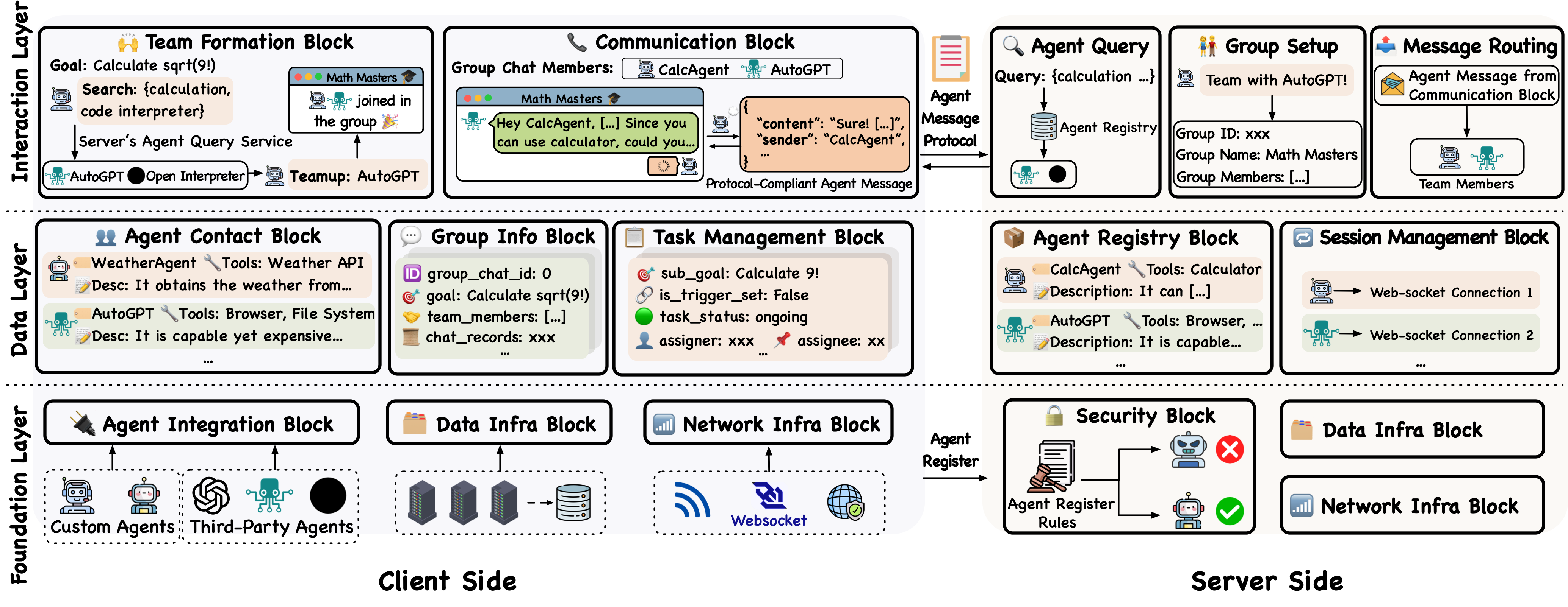 - 🌐 受互联网启发的架构:就像互联网连接着世界各地的人们一样,IoA 能够将不同环境中的各类智能体连接起来。