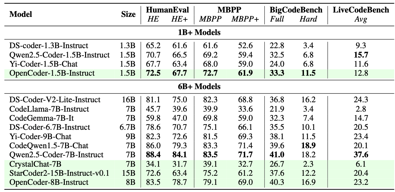 | OpenCoder-8B-Instruct | 8K | 🤗HuggingFace |