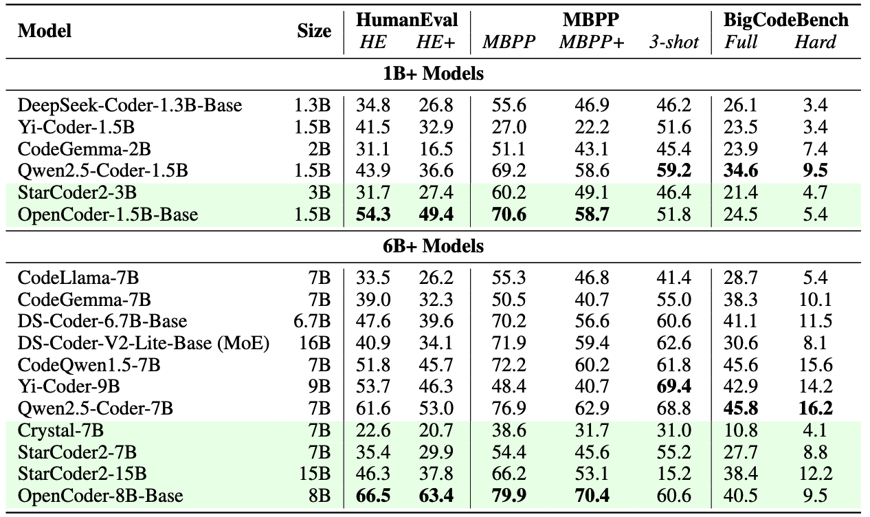 | OpenCoder-1.5B-Base | 4K | 🤗HuggingFace | |
