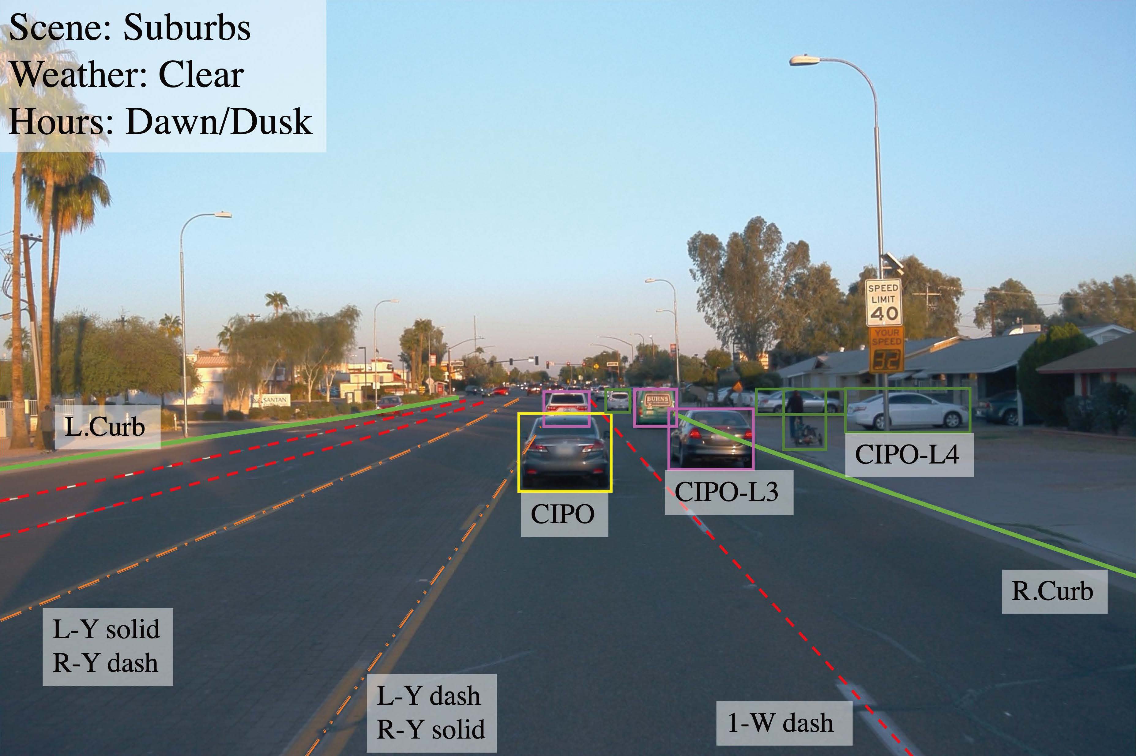 - 车道线类别:每条车道线具有类别,例如双黄线或路缘(curb)。