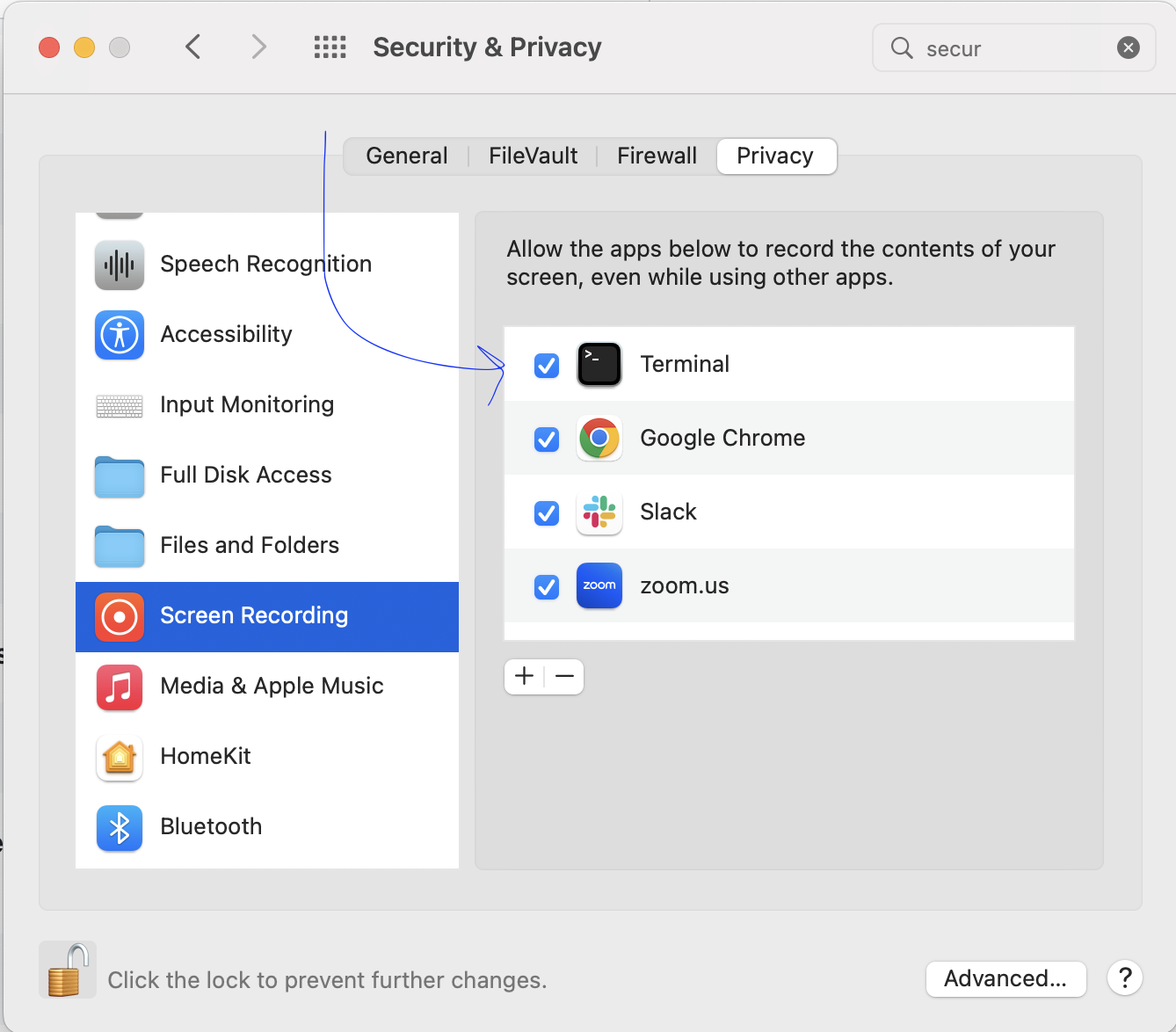 - 授予终端应用所需权限:最后一步,终端应用会在 Mac 的“系统偏好设置”中的“安全性与隐私”页面中请求“屏幕录制”和“辅助功能”的权限。