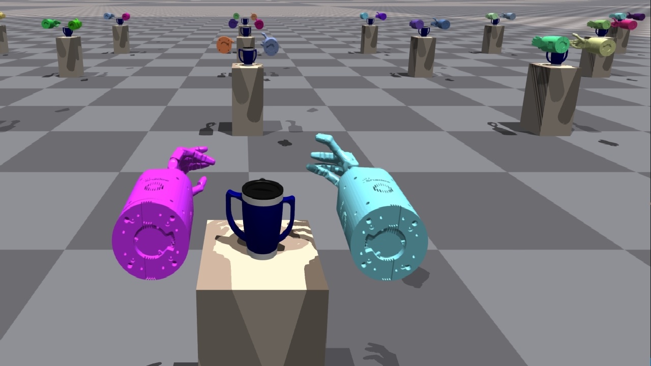 | ShadowHand 腋下提壶 | 该环境要求用两只手抓住壶柄,并将壶提升到指定位置。 | ![]() |