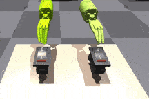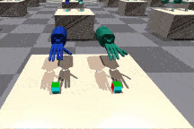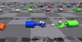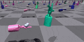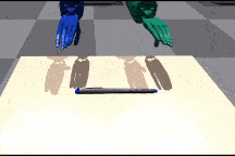 | ShadowHand 推方块 | 该环境要求两只手同时接触方块,并将其向前推动。 | ![]() |