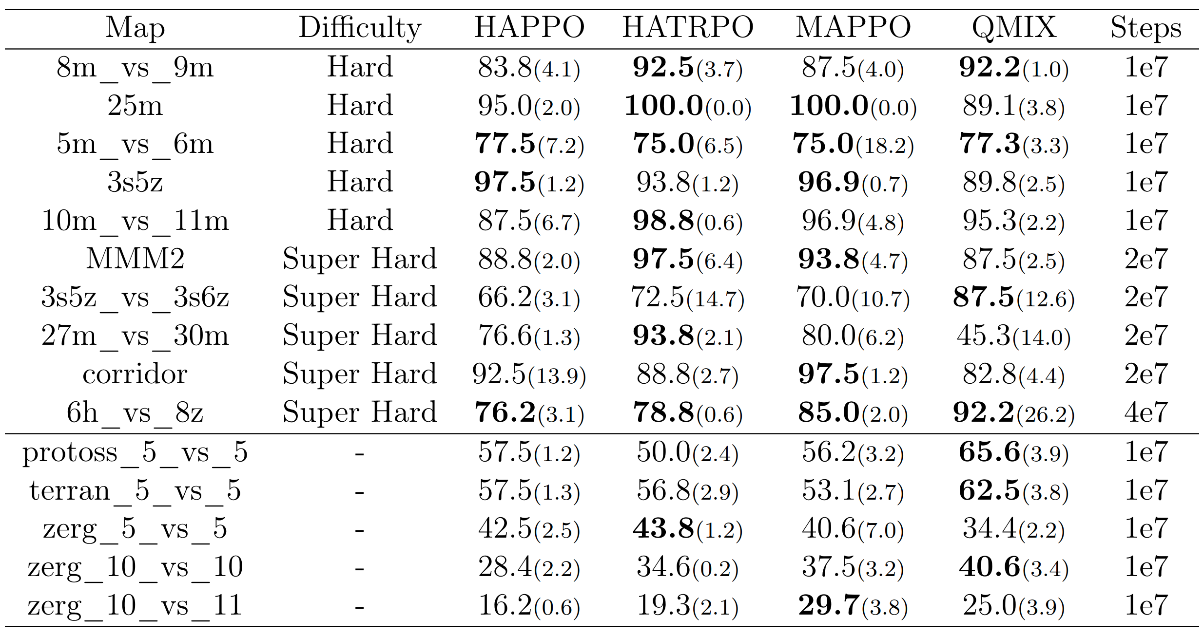 | HAPPO | √ | √ | √ |