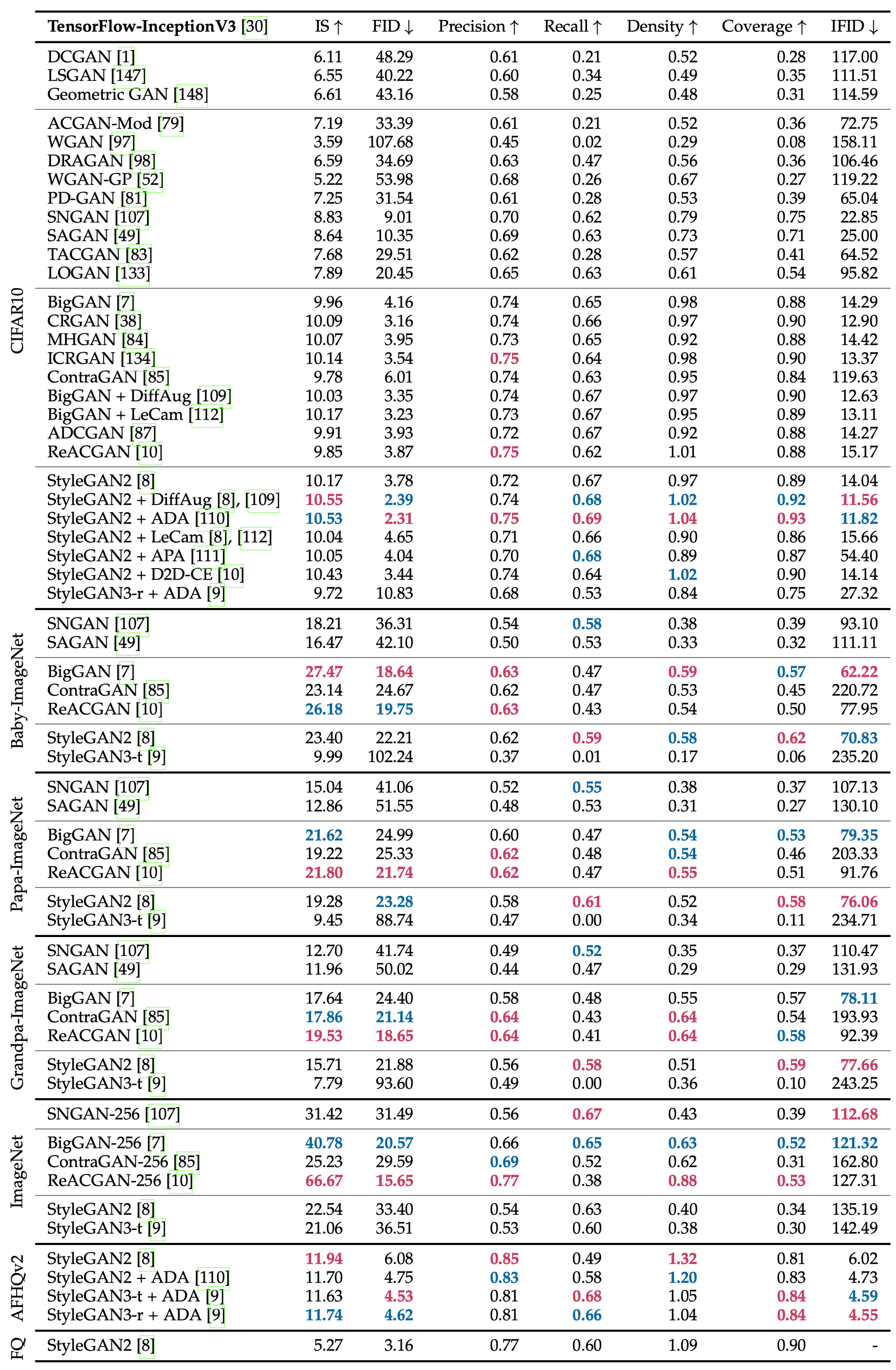 | Architecture-friendly metrics (IS, FID, PRDC) | arXiv'22 | Not limited to InceptionV3 |