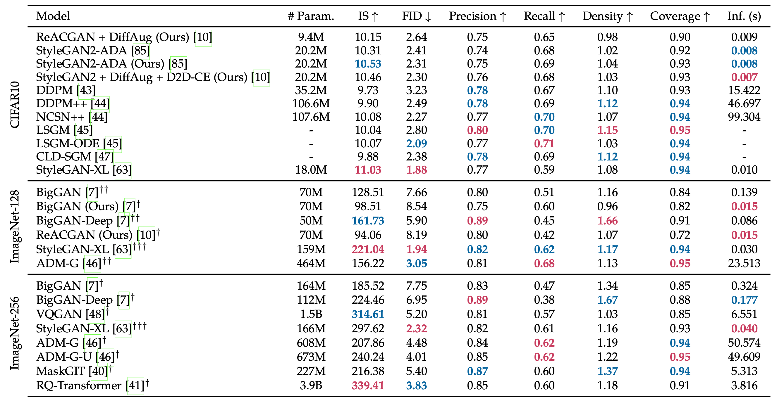 | ReACGAN | Neurips'21 | BigGAN | cBN | D2D-CE | 铰链 | 是 |