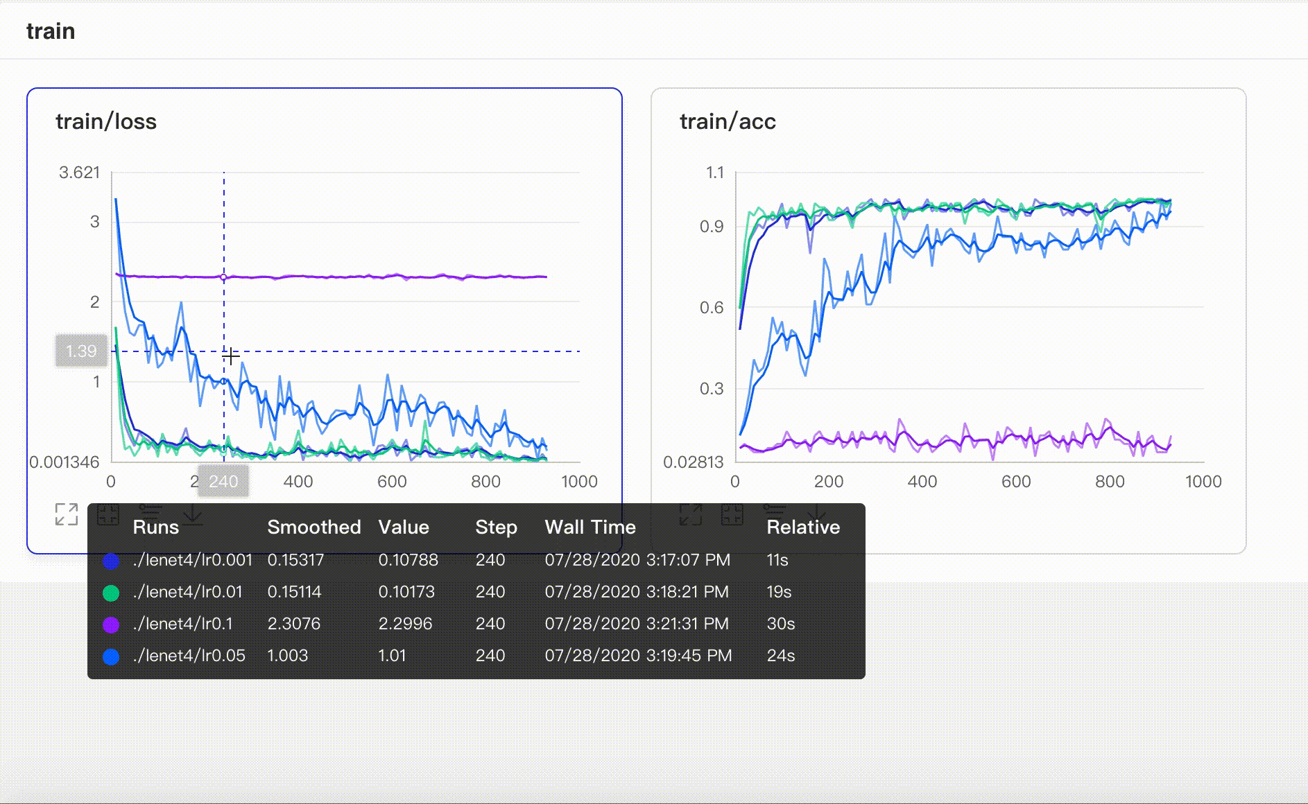 开发者可以通过同时指定并上传每个实验的路径,将相同的参数在同一张图中进行可视化,从而实现多实验的对比。