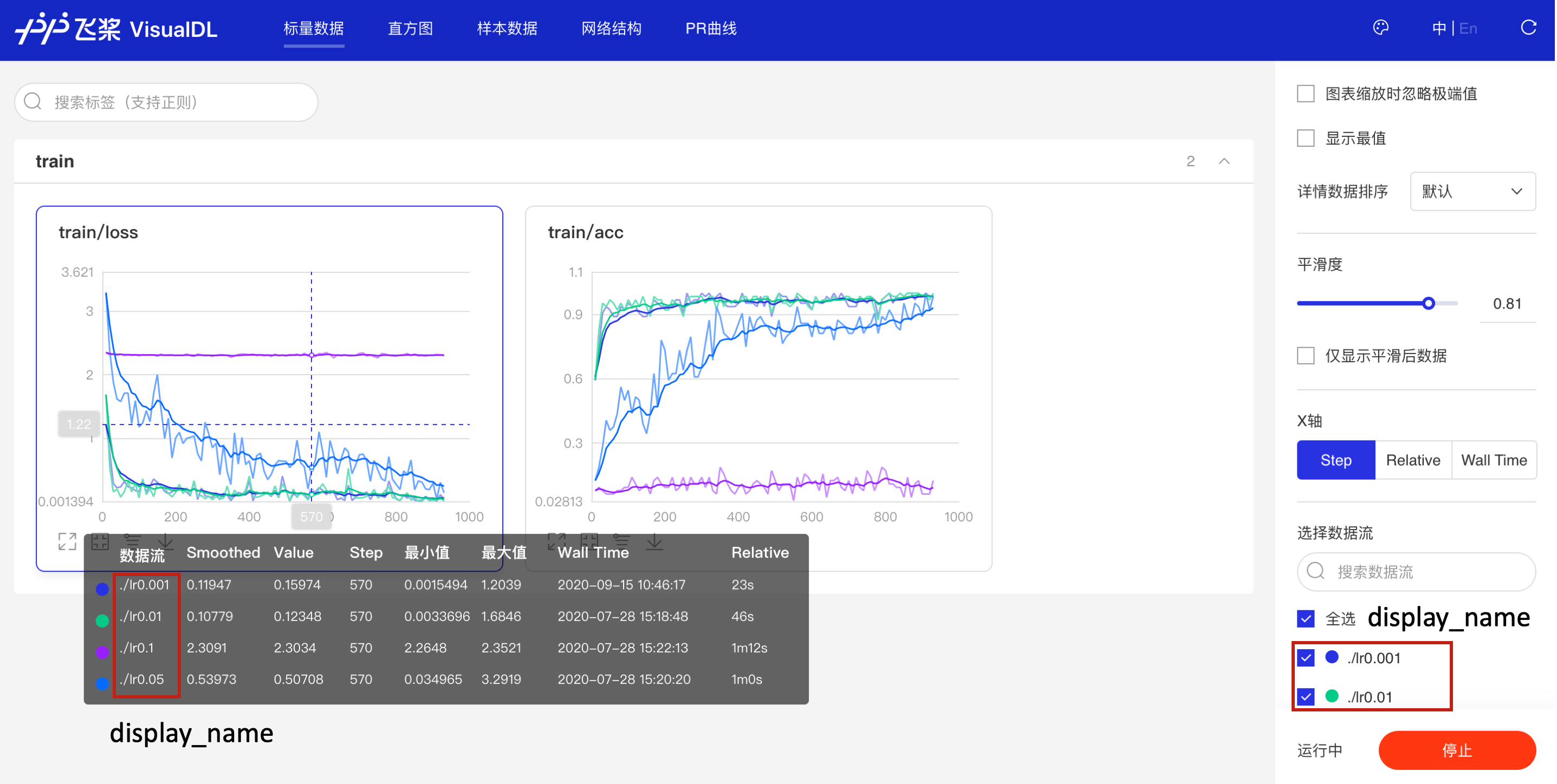 | display_name | 字符串 | 此参数会显示在面板的“选择数据流”位置。若未设置,则默认名称为logdir。(当logdir过长或需要隐藏时适用)。 |