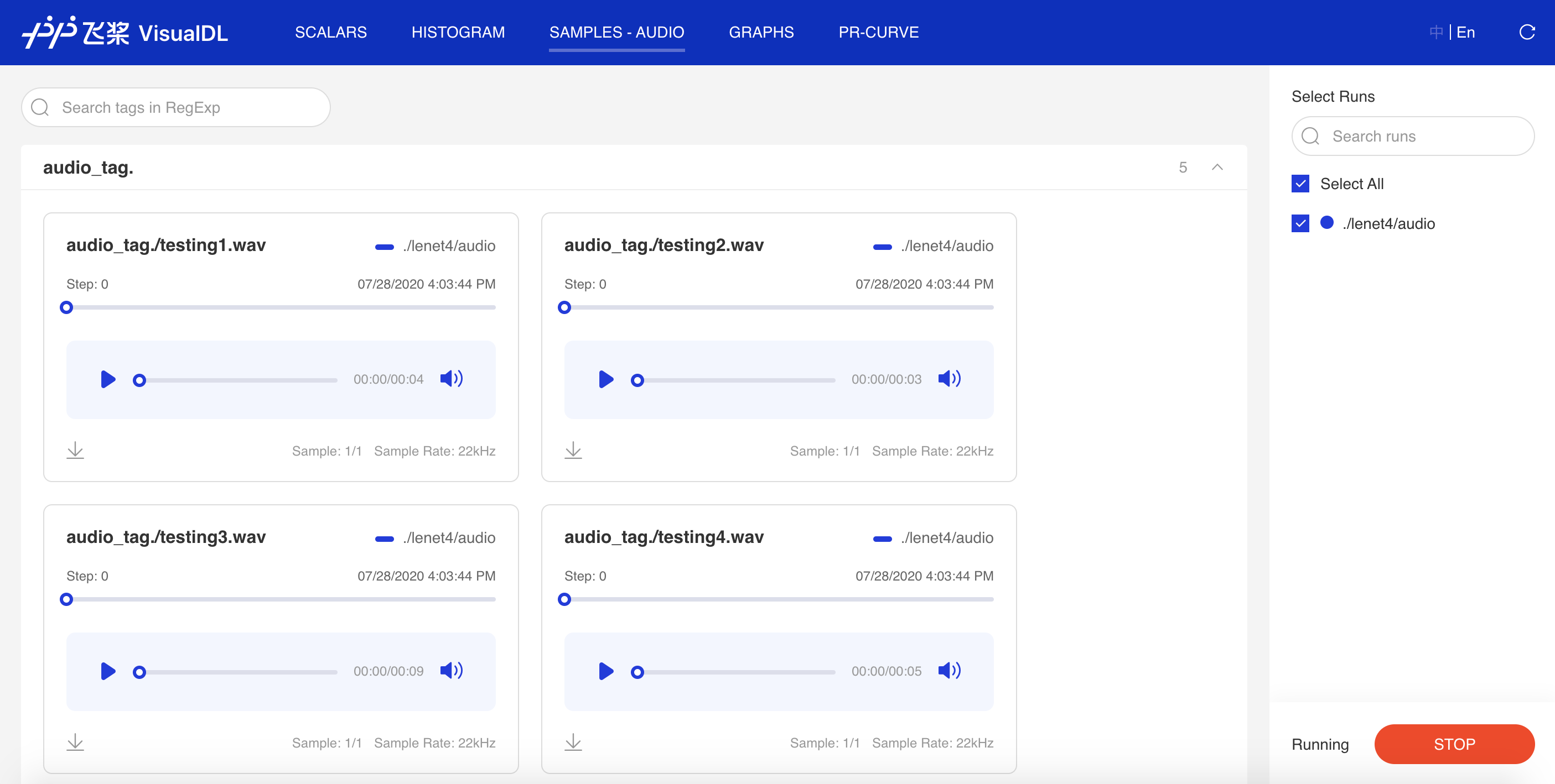 VisualDL会将训练过程中的数据、参数等信息存储在一个日志文件中。用户可以通过启动面板来查看可视化结果。