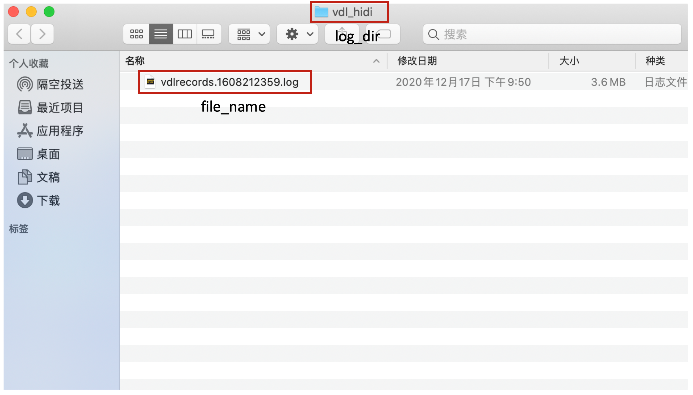 | file_name | 字符串 | 设置日志文件的名称。如果文件名已存在,新设置的文件名将在同一日志文件中继续记录,不会创建新文件。注意,文件名应包含“vdlrecords”。 |