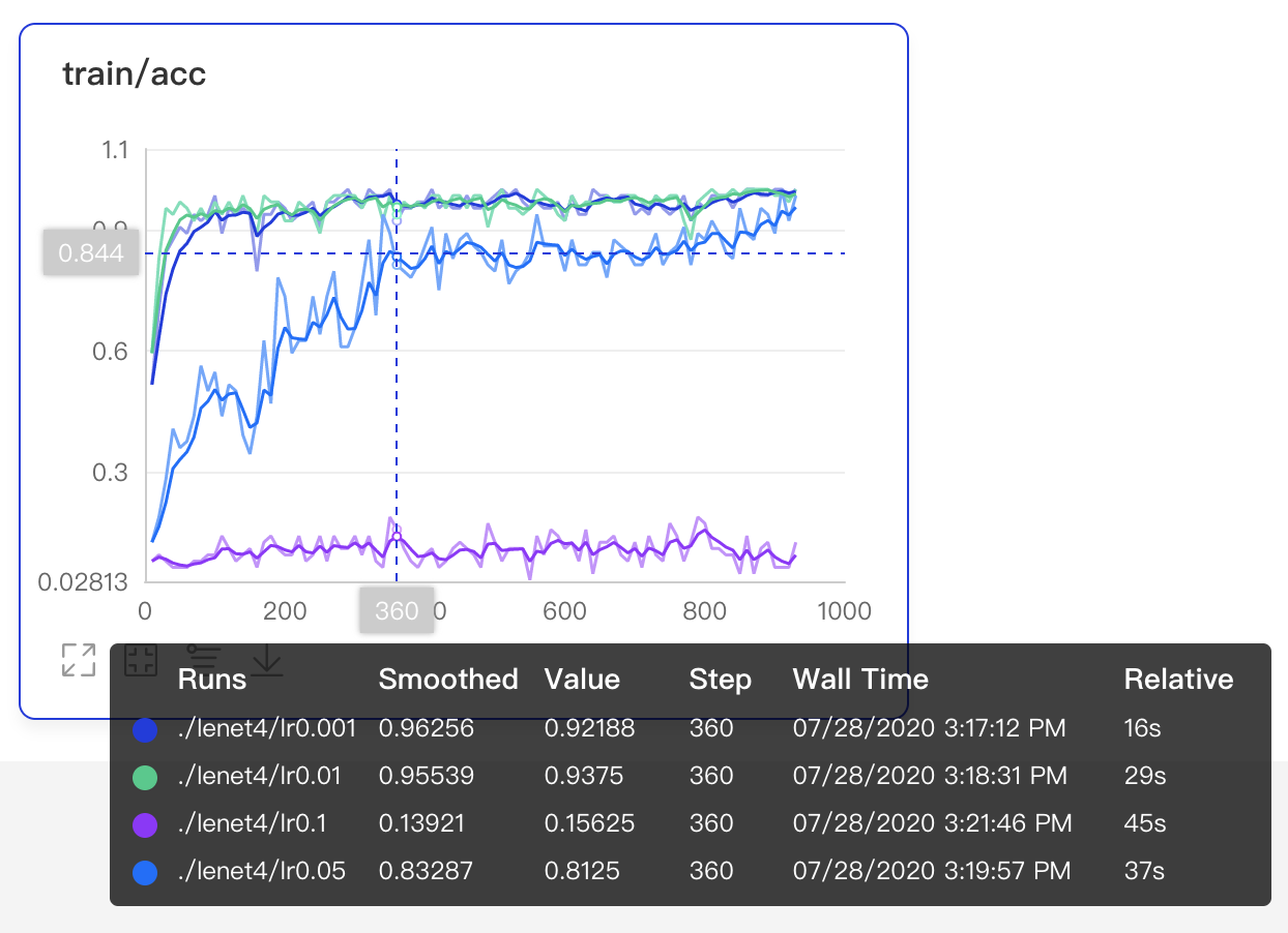 writer.add_scalar(tag="acc", step=2, value=0.6878)
