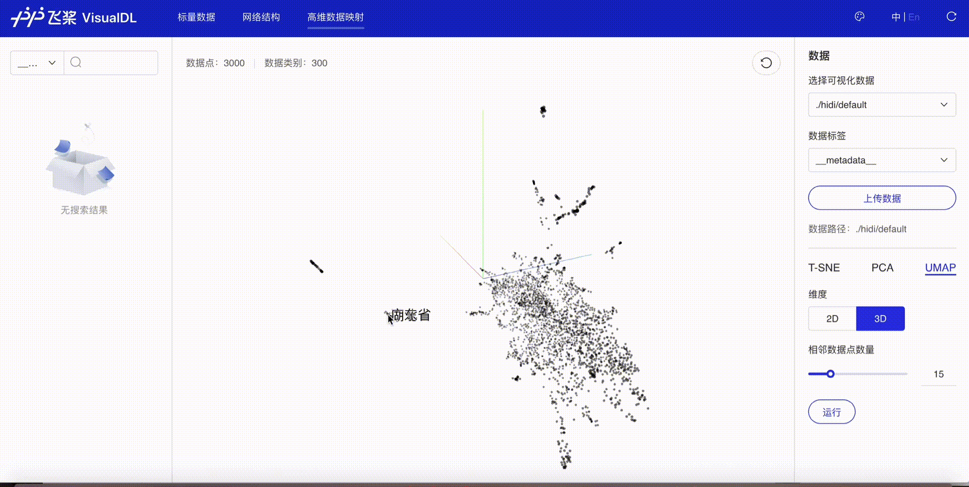 高维数据 提供三种降维方法——T-SNE、PCA 和 UMAP——使开发者能够深入分析高维数据之间的关系,并基于这些分析优化算法。