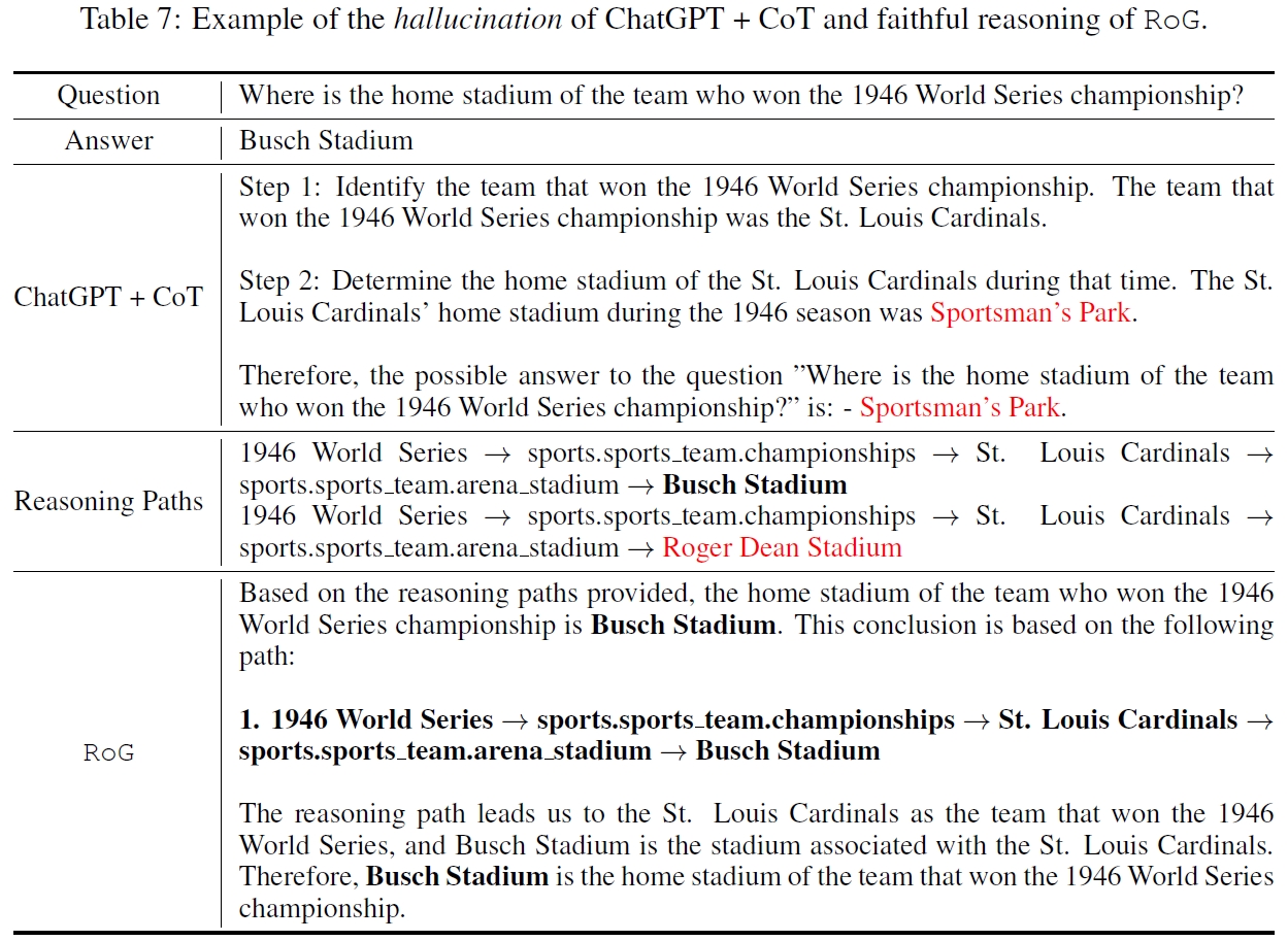 - 事实锚定:reasoning-on-graphs 先基于知识图谱生成确切的“关系路径规划”,强制模型仅在检索到的真实路径上进行推理,彻底消除幻觉。