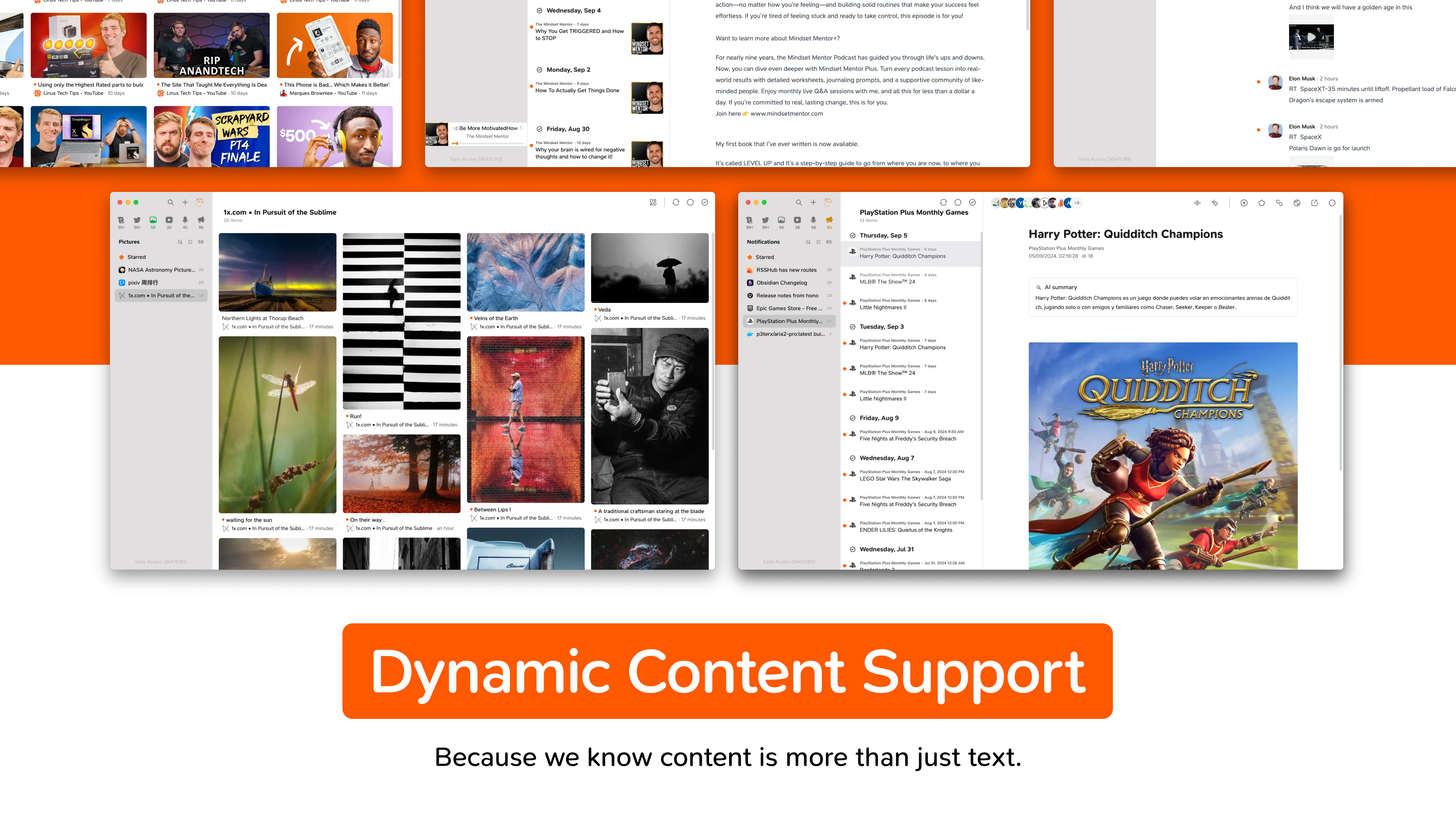 我们深知内容远不止文字。从文章到视频,从图片到音频——Folo全面覆盖。