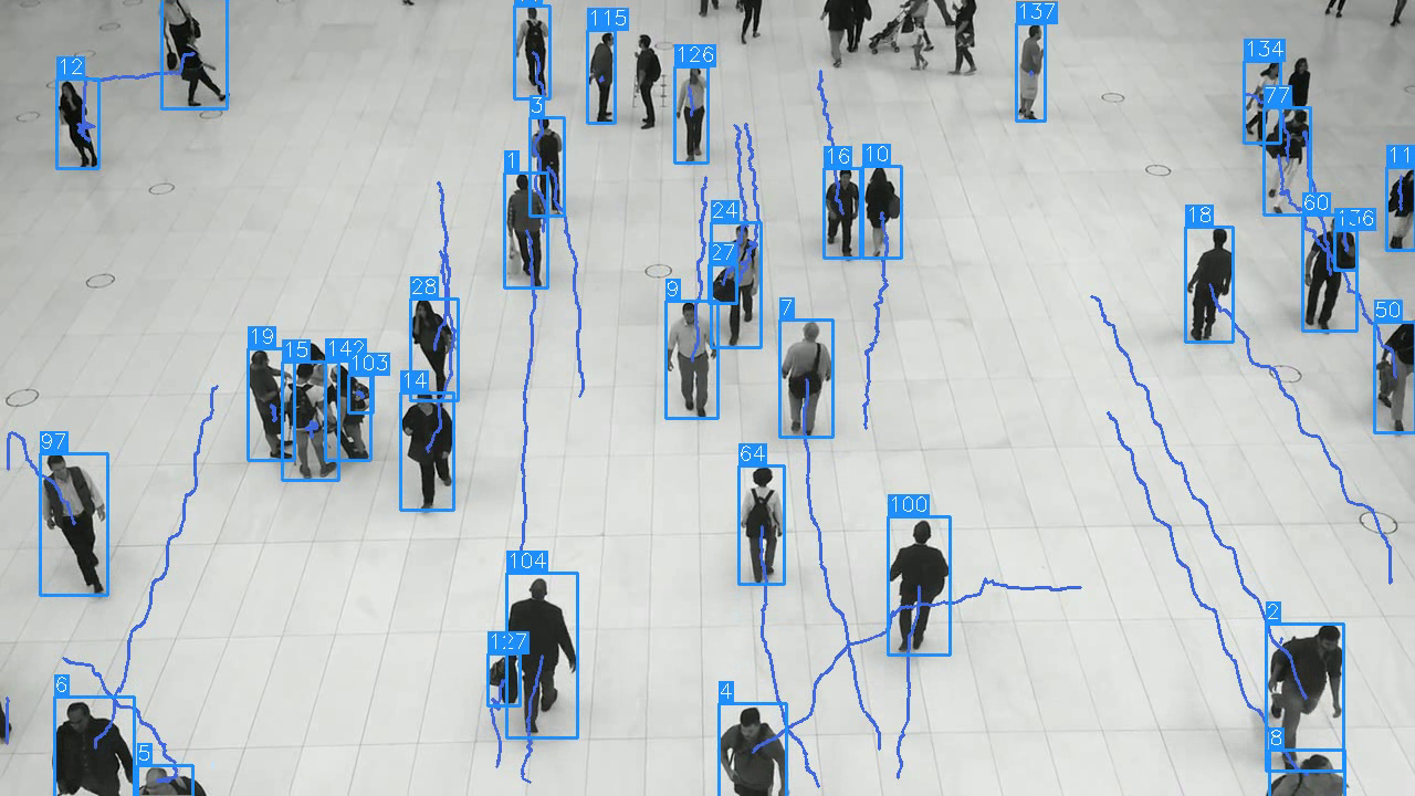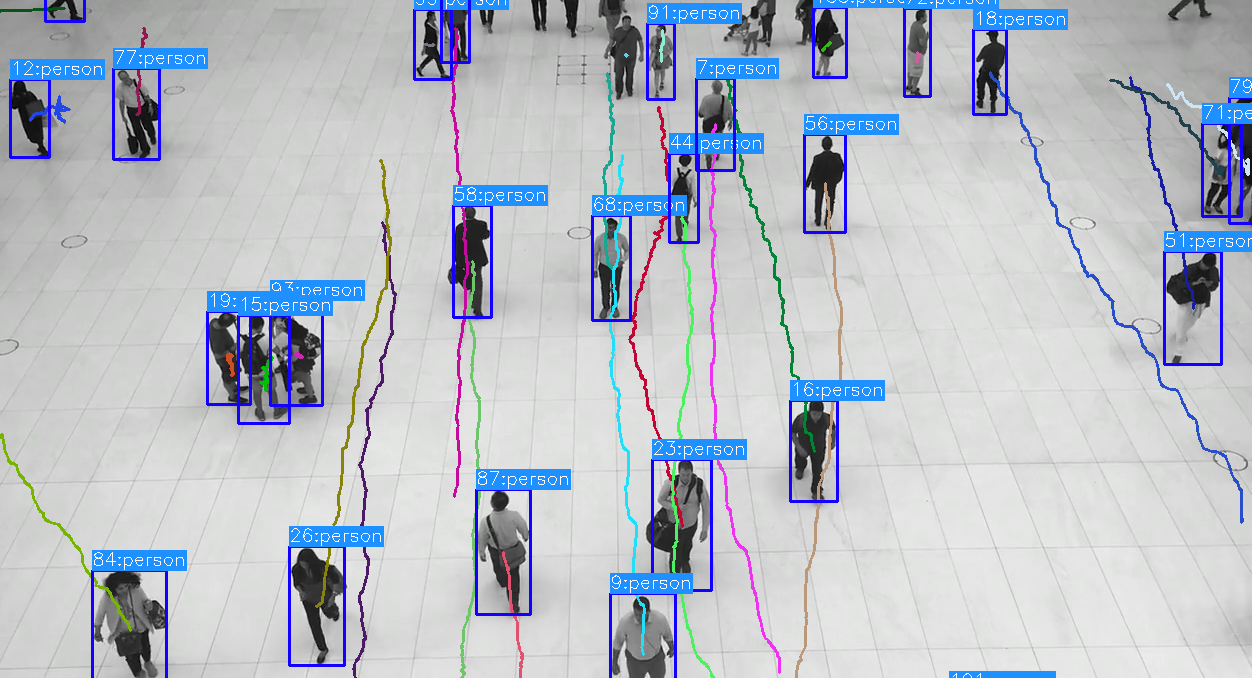 python detect_and_track.py --weights yolov7.pt --source "your video.mp4" --classes 0彩色轨迹: