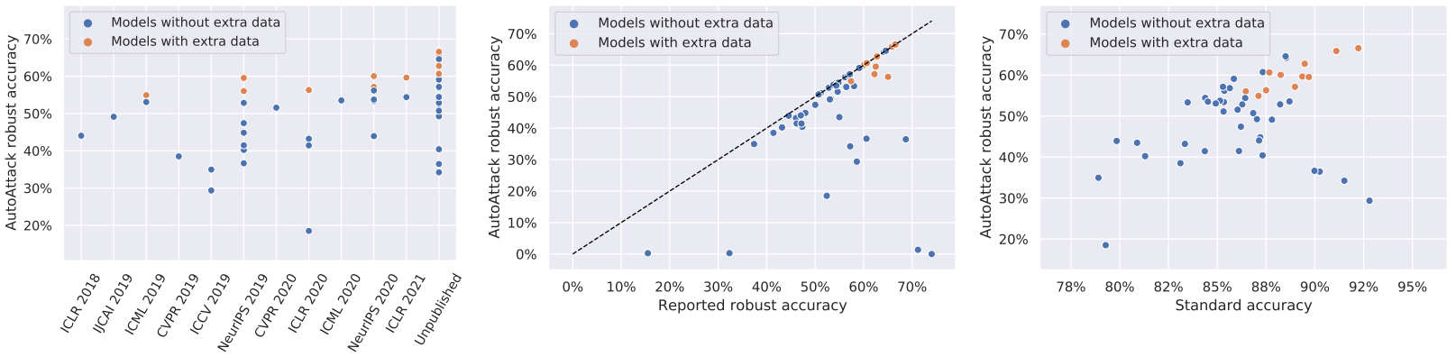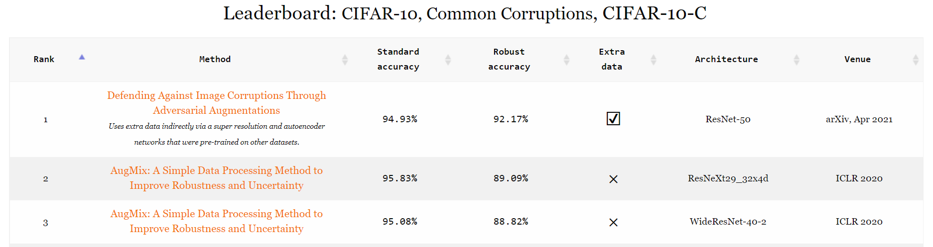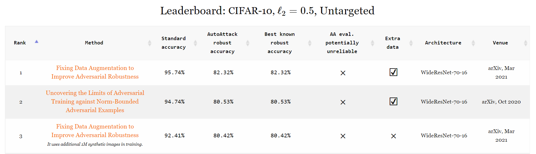 - 一个网站 https://robustbench.github.io/,其中包含基于许多近期论文的排行榜(下图 👇)