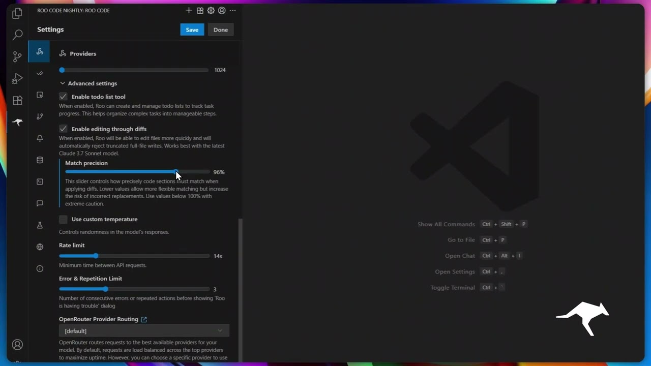 Roo Code 可以根据您的工作方式灵活调整: