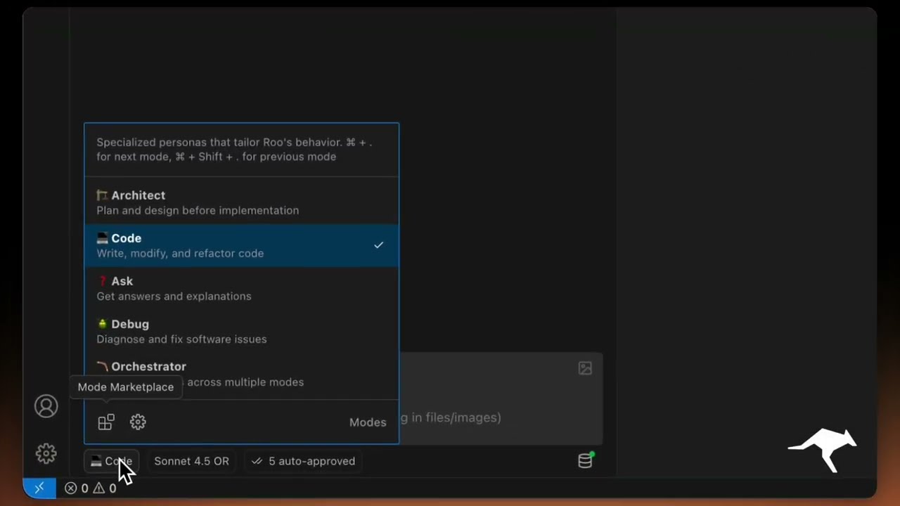 - 工作流无缝衔接:在 VS Code 中直接启用"Architect Mode"规划拆分方案,随即切换"Code Mode"自动生成迁移代码,全程无需离开编辑器。