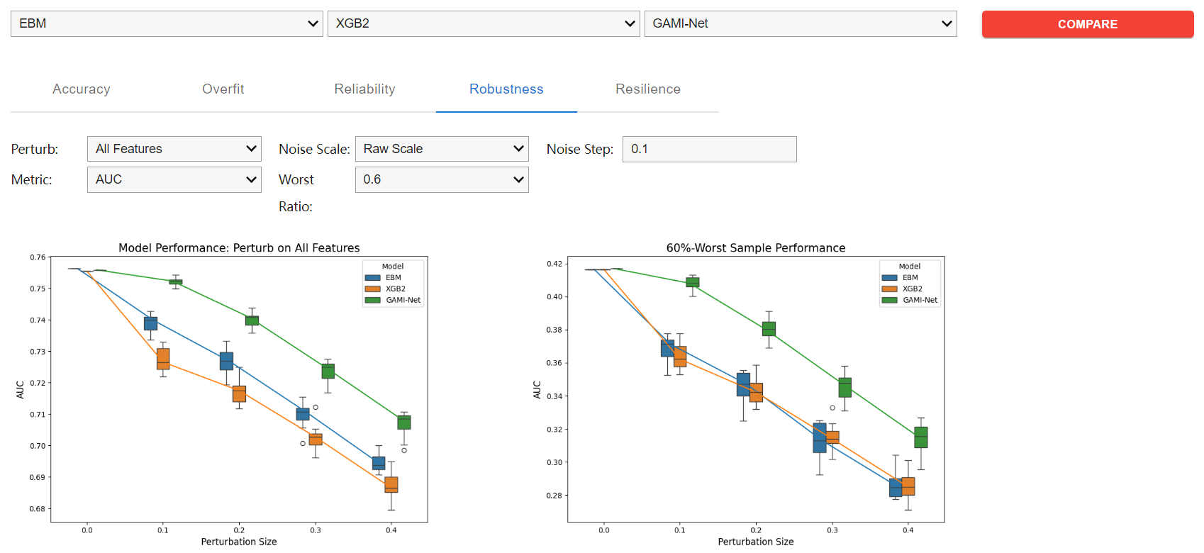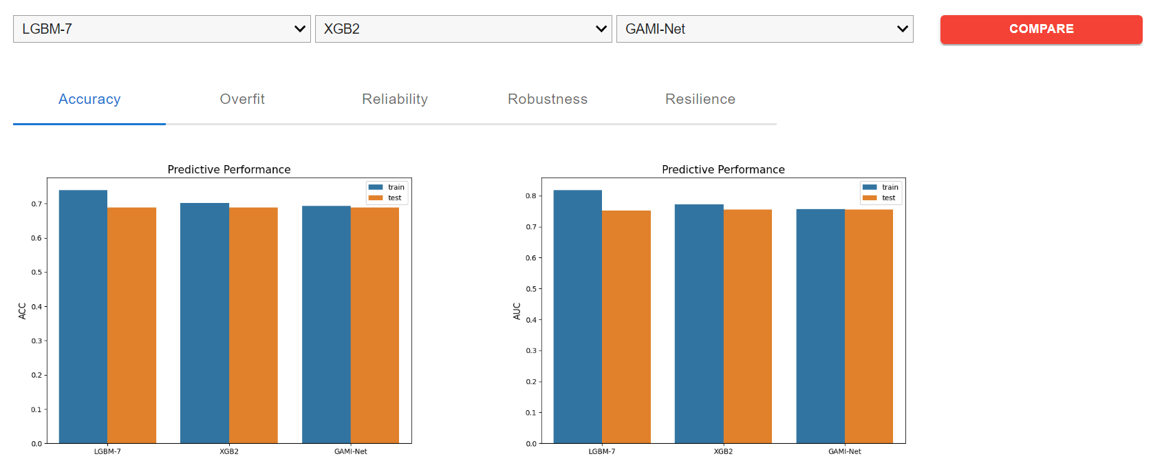然后,将其与固有可解释模型(如 XGB2 和 GAMI-Net)进行比较: