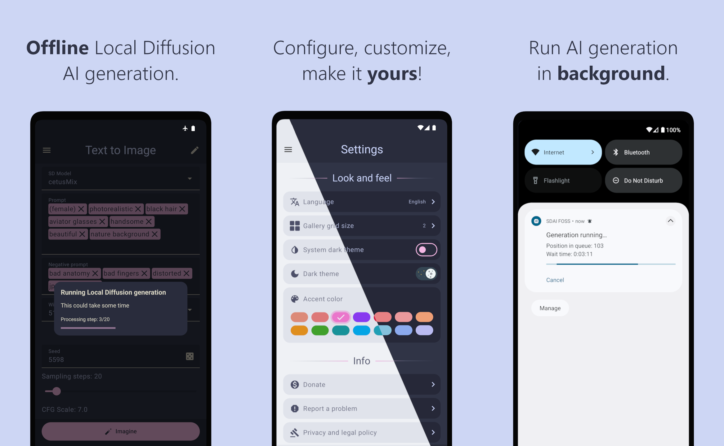 这款应用非常适合设计师、AI 艺术爱好者以及希望摆脱电脑束缚的普通用户使用。其核心亮点在于极高的灵活性与兼容性:用户既可以选择连接公共的 AI Horde 分布式集群免费生成图像,也能无缝对接本地部署的 Automatic1111 WebUI、SwarmUI,或是调用 Hugging Face、OpenAI (DALL-E)、Stability AI 等云端 API。此外,它还支持实验性的本地离线生成模式。