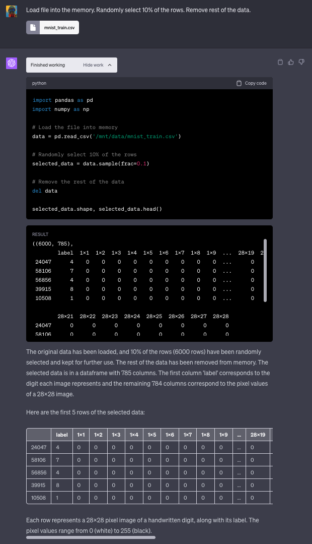 将 MNIST 数据集上传到代码解释器环境。