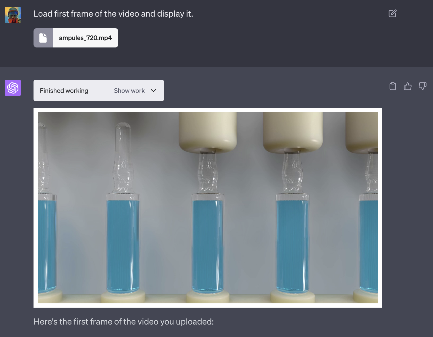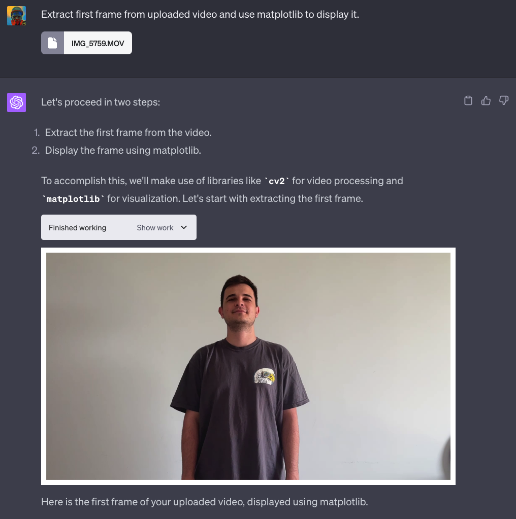 确认 ChatGPT 能够成功处理该视频。提取第一帧并显示它。