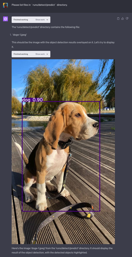.zip文件。yolo / ├── yolov8n.pt ├── ultralytics-8.0.132-py3-none-any.whl └─ data / ├── doge-1.jpeg ├── doge-2.jpeg └── doge-3.jpeg在开始之前,让我们确认可以无错误地导入
