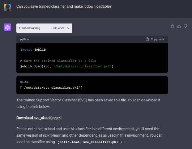 代码解释器是 ChatGPT 的官方 插件,可用于数据分析、图像转换、代码编辑等任务。自 2023 年 7 月 6 日起,所有 ChatGPT Plus 用户均可使用该插件。它为 OpenAI 模型提供了一个运行于沙盒式、受防火墙保护的执行环境中的 Python 解释器。值得注意的是,用户可以上传和下载文件。