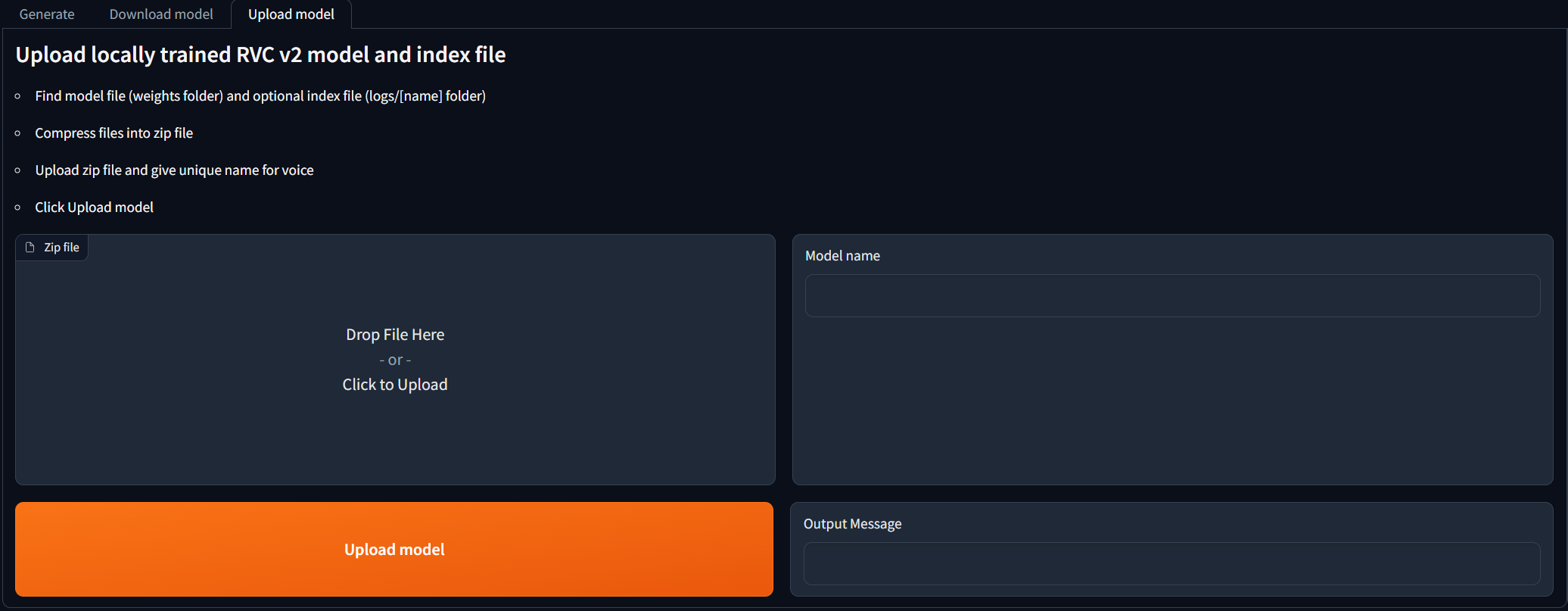 - 允许通过 WebUI 上传本地训练的 RVC v2 模型