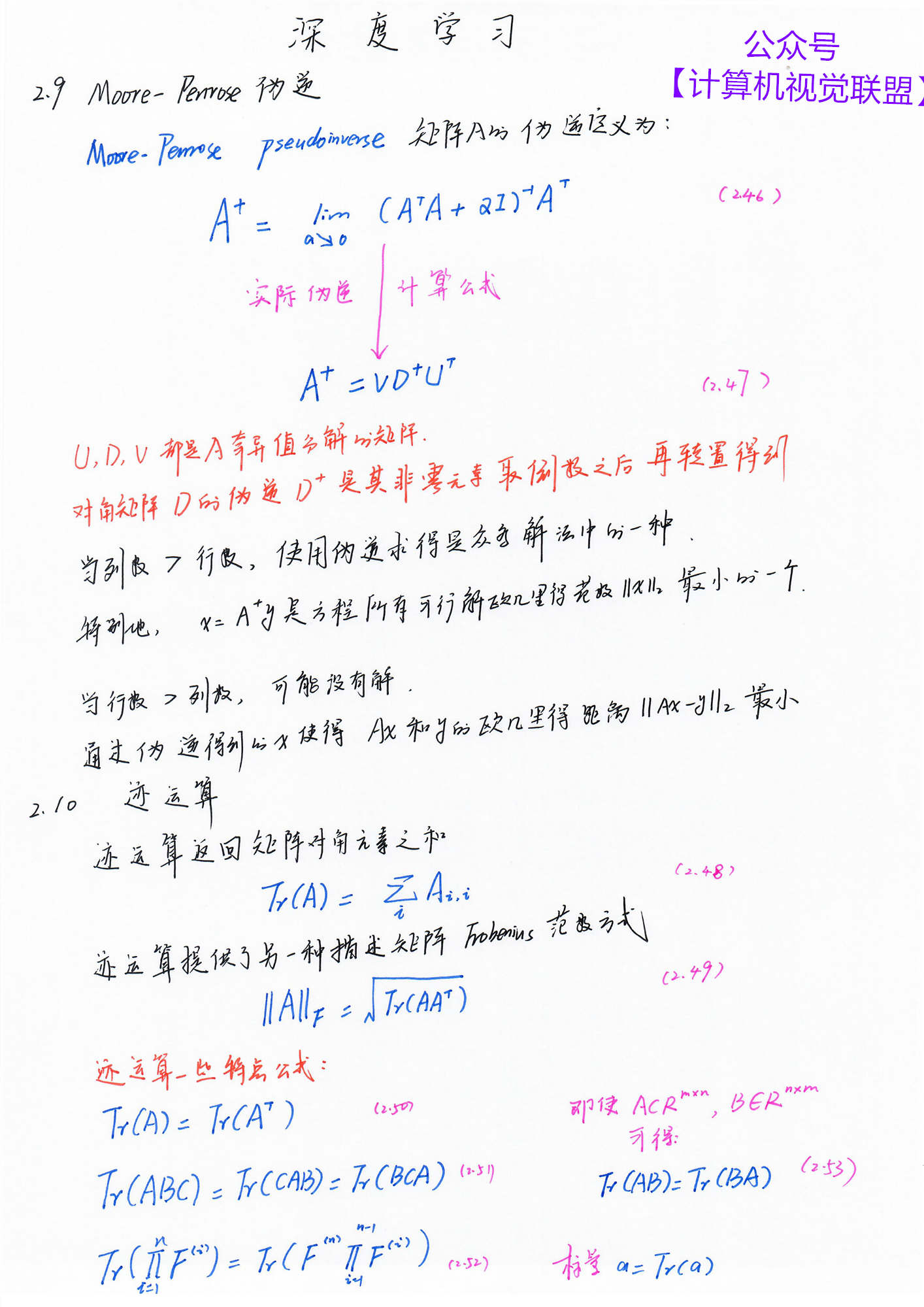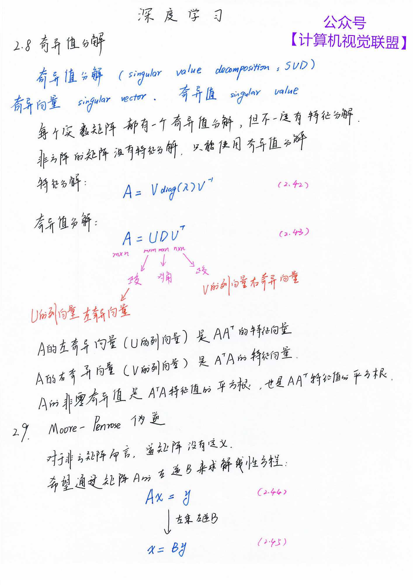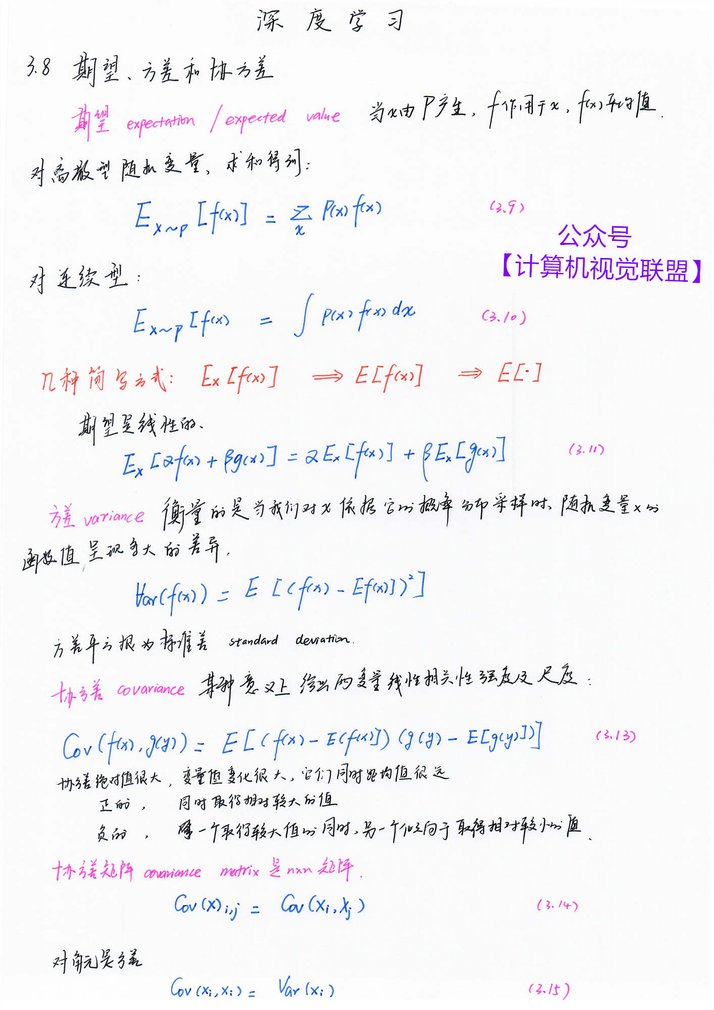 【计算机视觉联盟】回复【深度学习手推笔记】即可获得百度云 pdf 下载链接