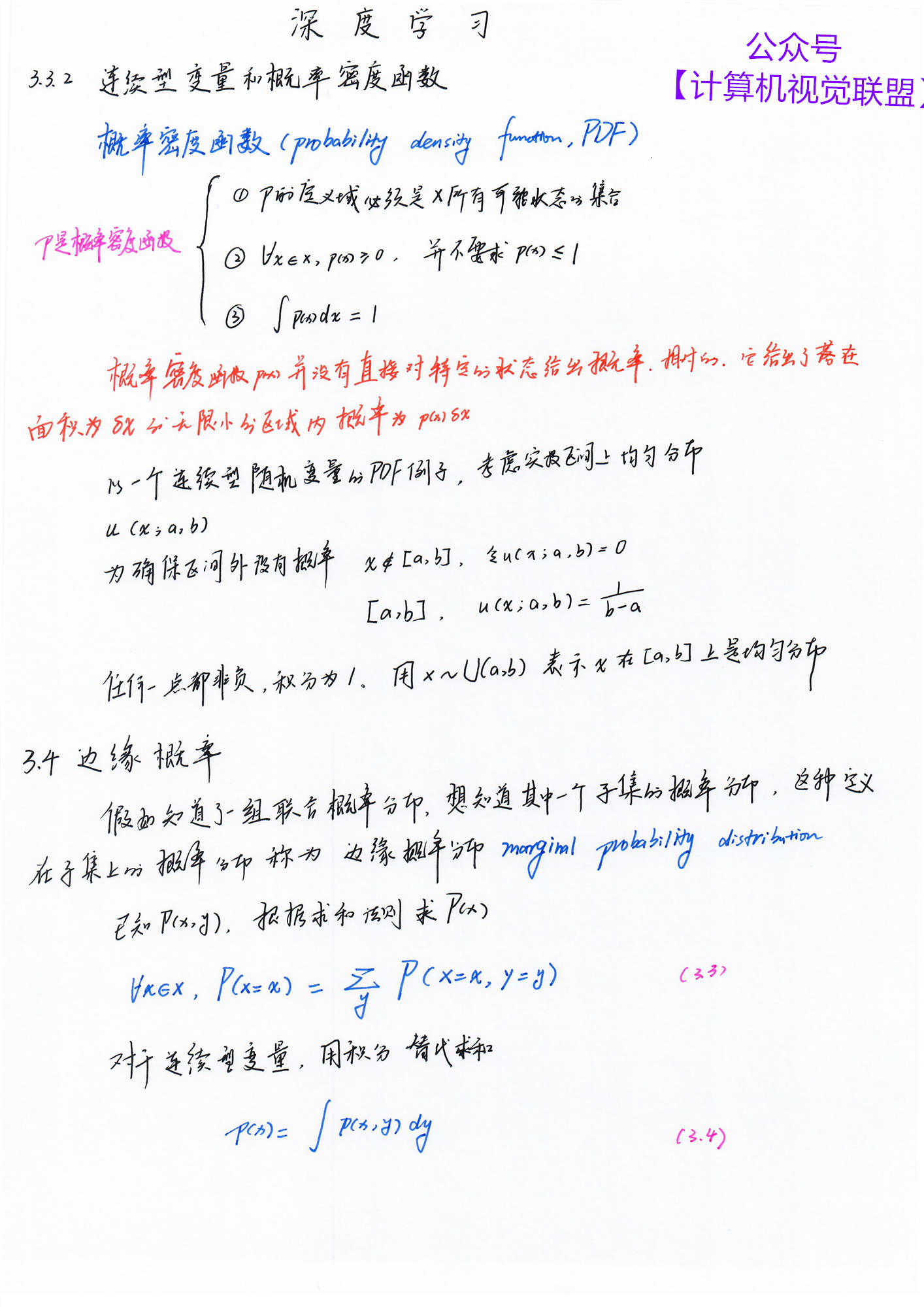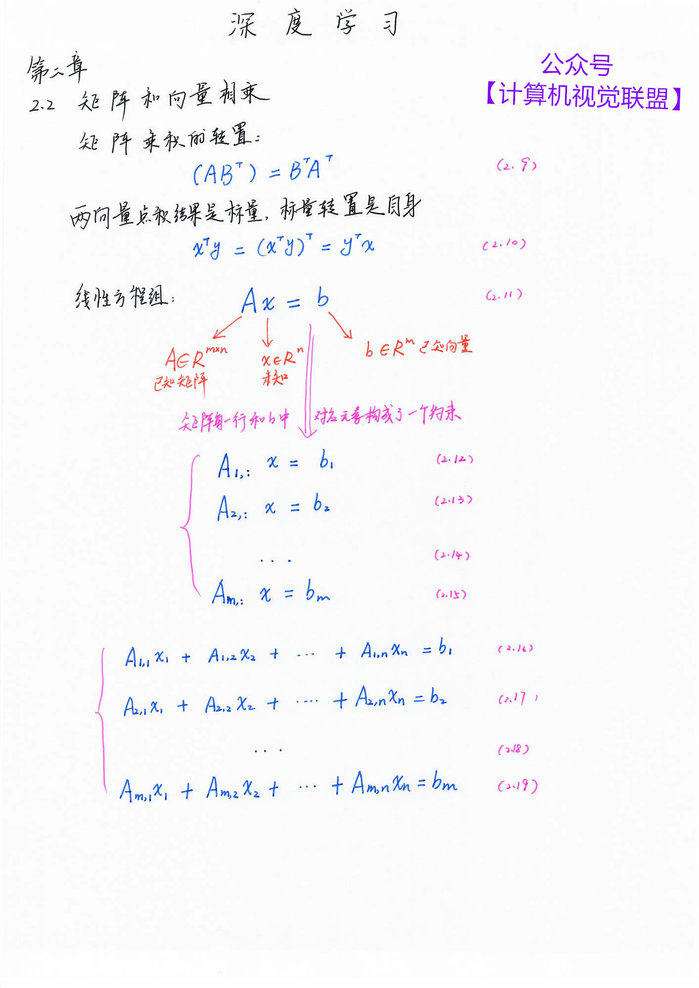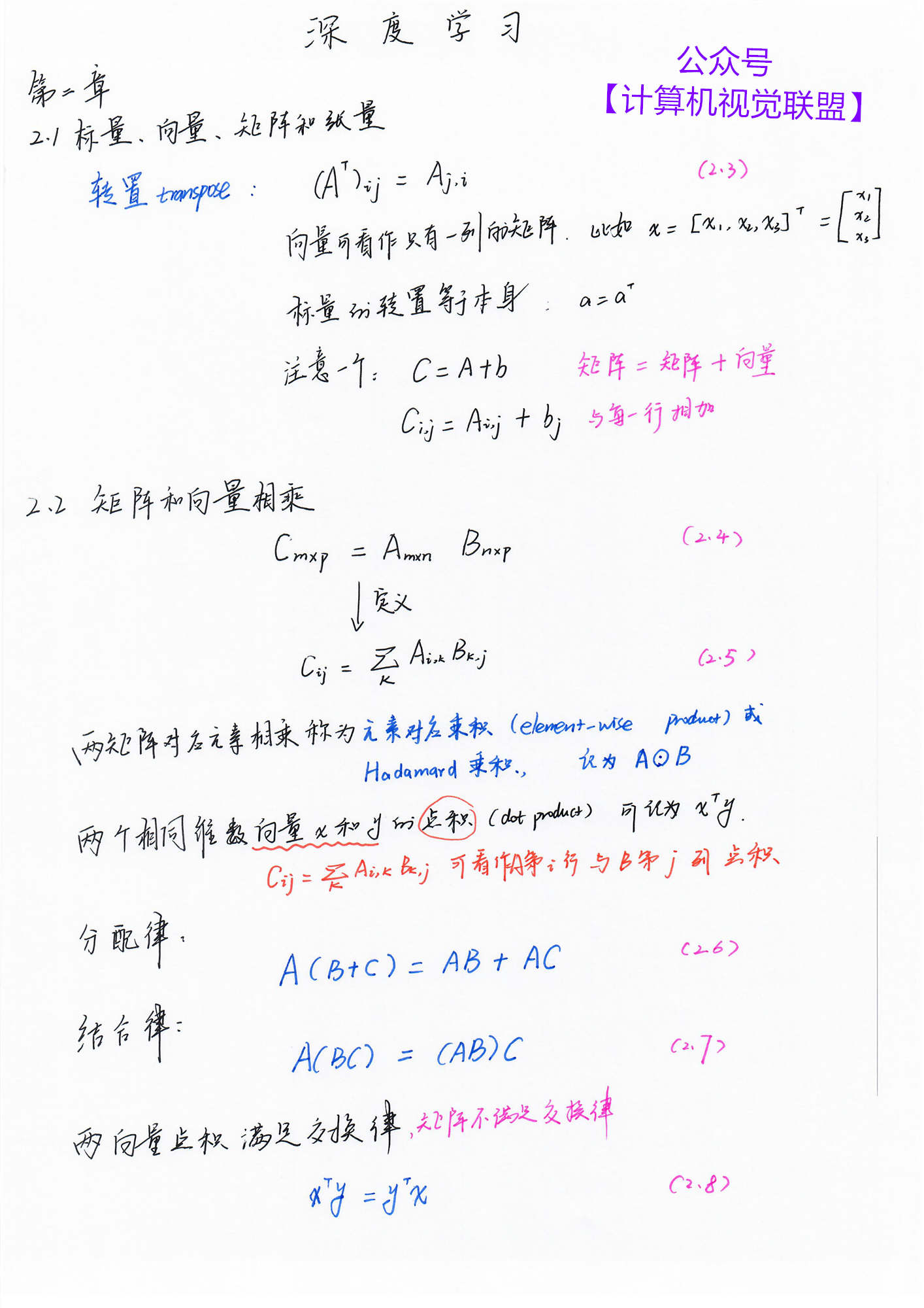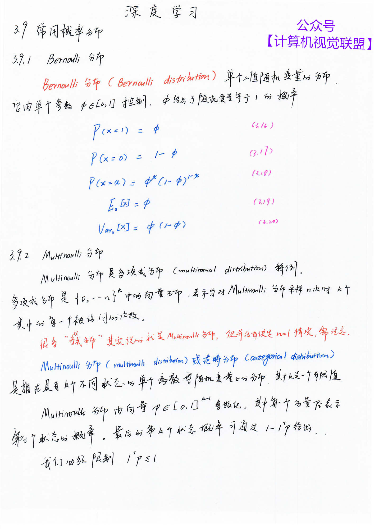 【计算机视觉联盟】回复【深度学习手推笔记】即可获得百度云 pdf 下载链接