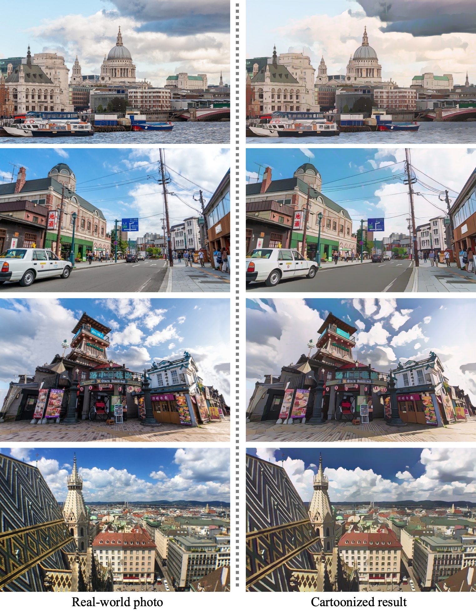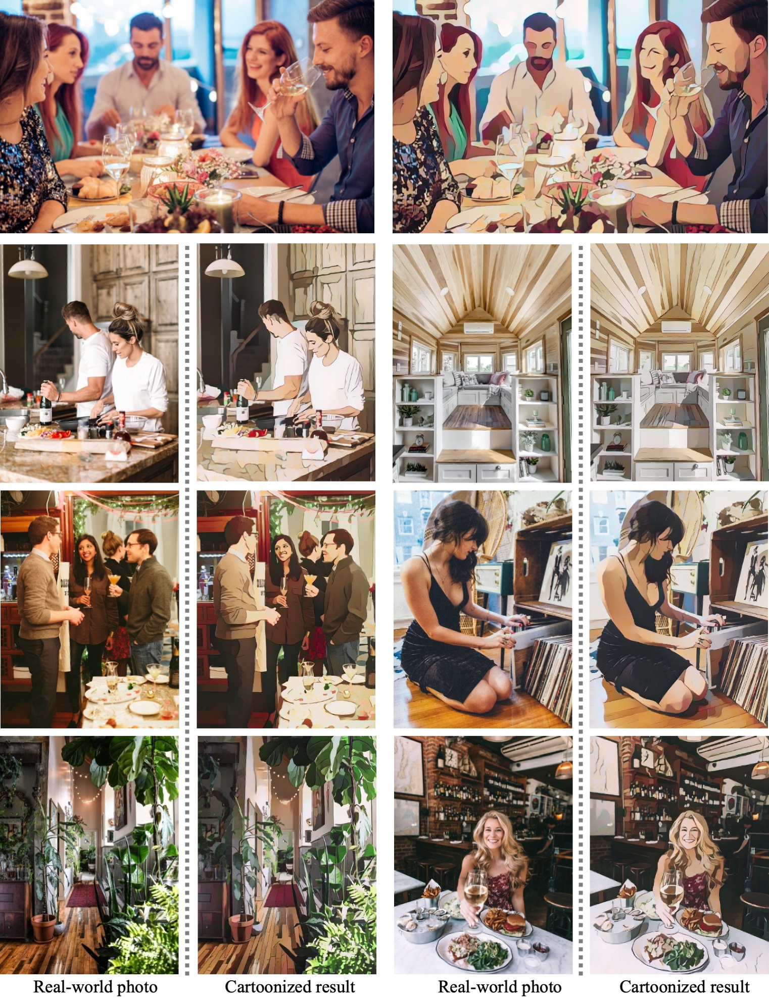 该项目不仅适用于风景、食物和室内场景,对人像也有良好的处理效果(另有专门优化的人脸版本)。其独特的技术亮点在于提出了“白盒卡通表示”方法,通过解耦图像的内容结构与纹理风格,实现了更可控、更高质量的风格迁移,而非简单的黑盒映射。