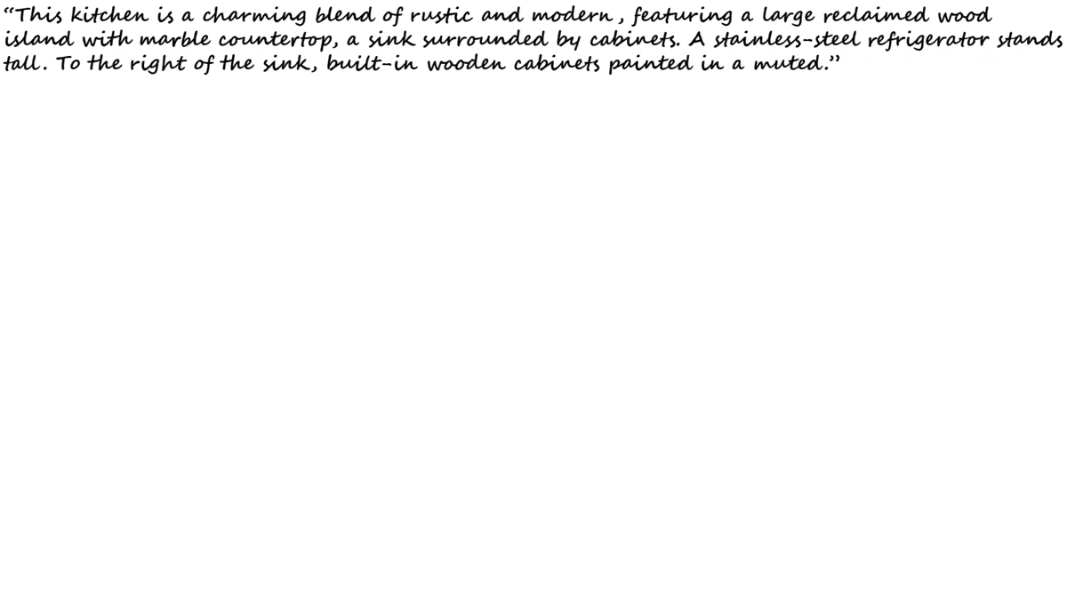 python demo.py --text "这间厨房是乡村风格与现代设计的迷人融合,中央设有一座由回收木材制成的大岛台,台面为大理石材质,水槽四周环绕着橱柜。岛台左侧矗立着一台不锈钢冰箱,右侧则是一排涂成柔和色调的木质嵌入式橱柜。"