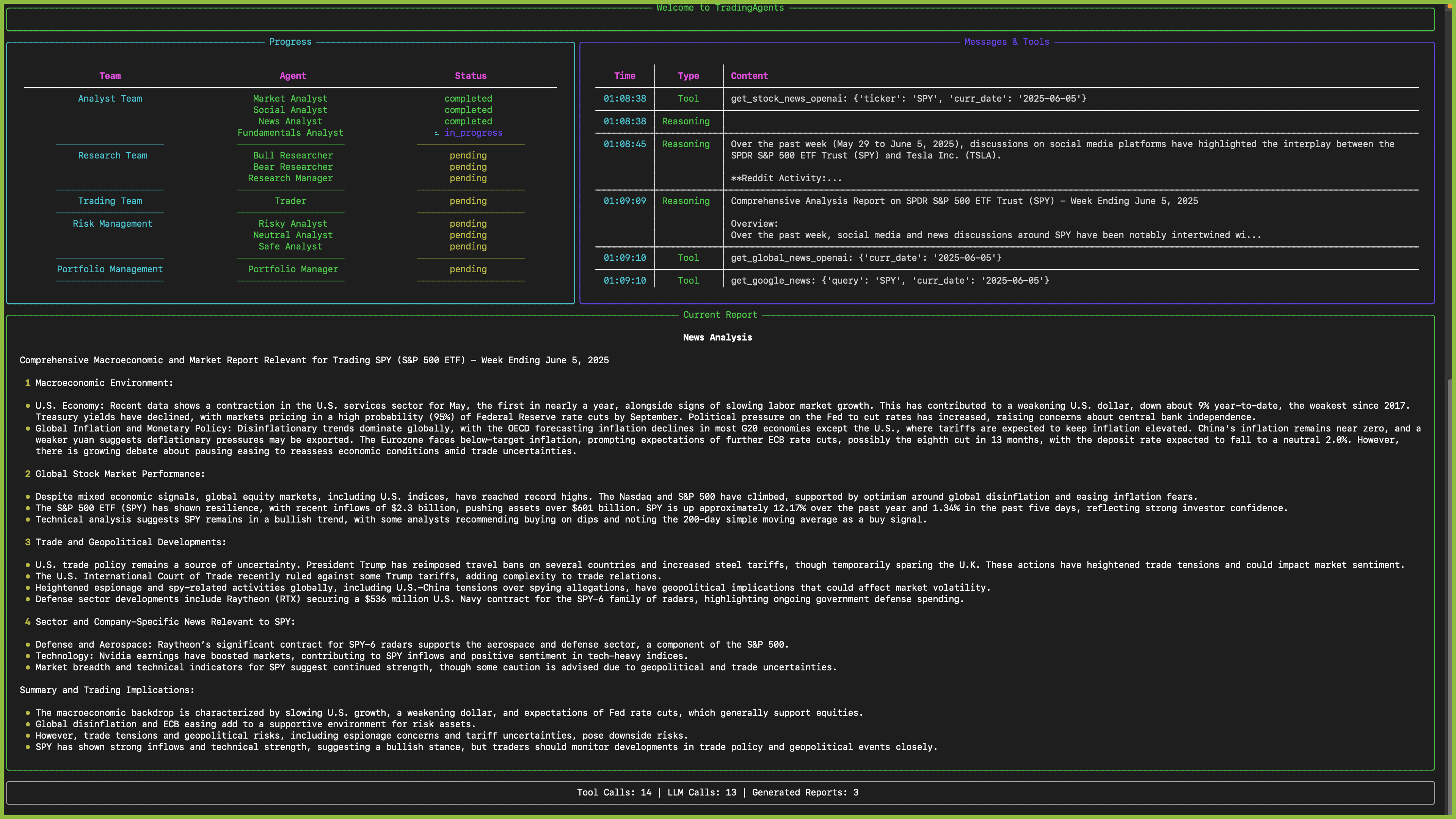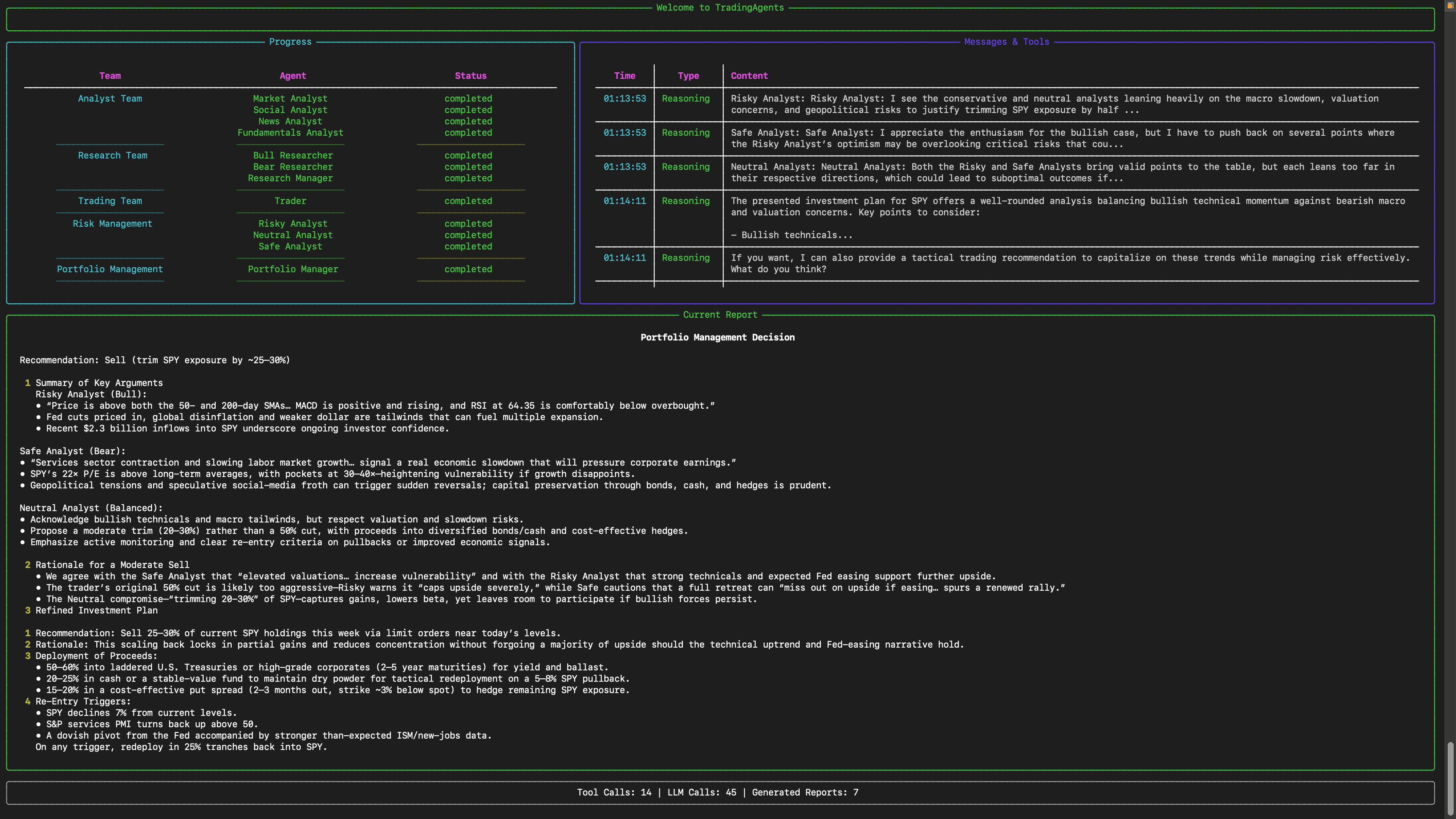 - 根据分析师和研究员的报告做出明智的交易决策。它会基于全面的市场洞察来确定交易时机和规模。