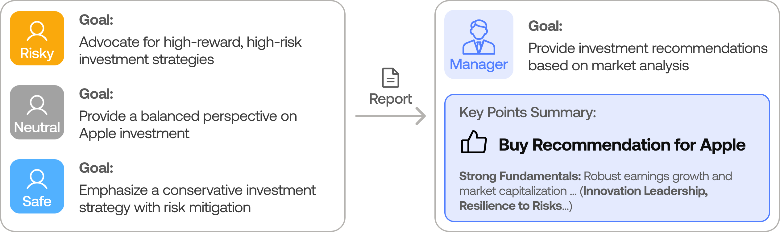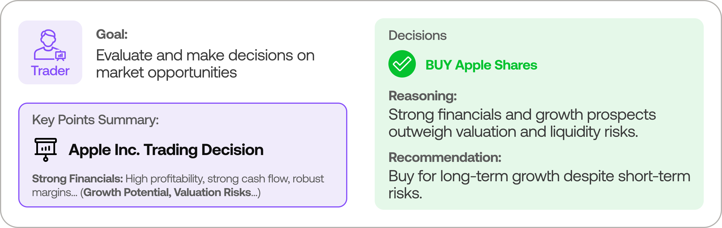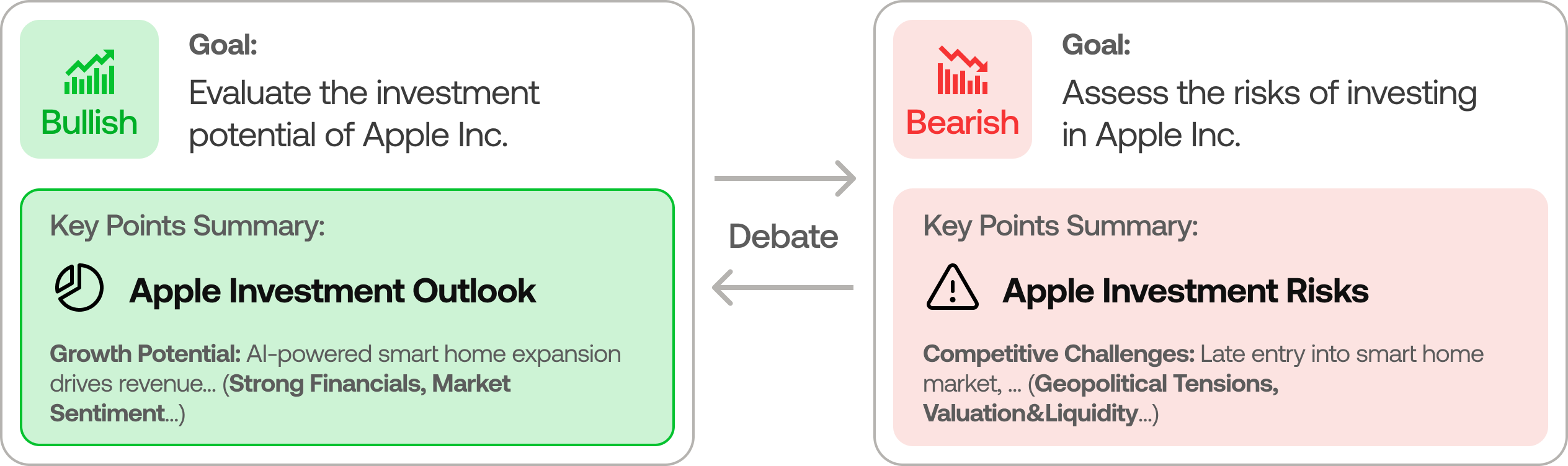 - 不同分析师之间的观点难以标准化统一,导致最终决策依赖主观经验,缺乏可复现的系统性框架支持。