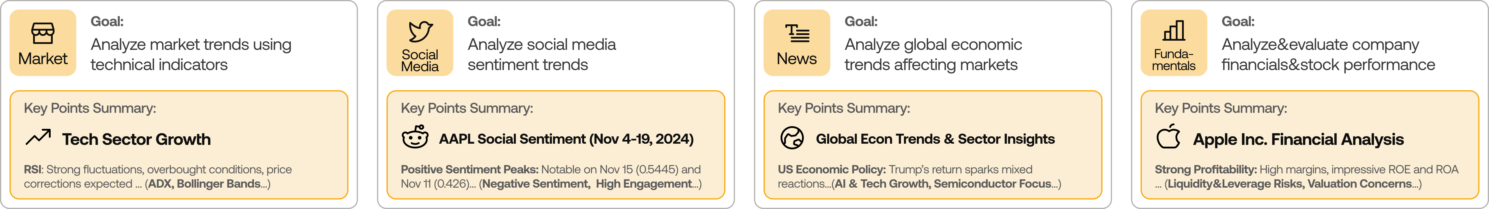 - 基本面分析师:评估公司的财务状况和业绩指标,识别内在价值及潜在风险信号。
