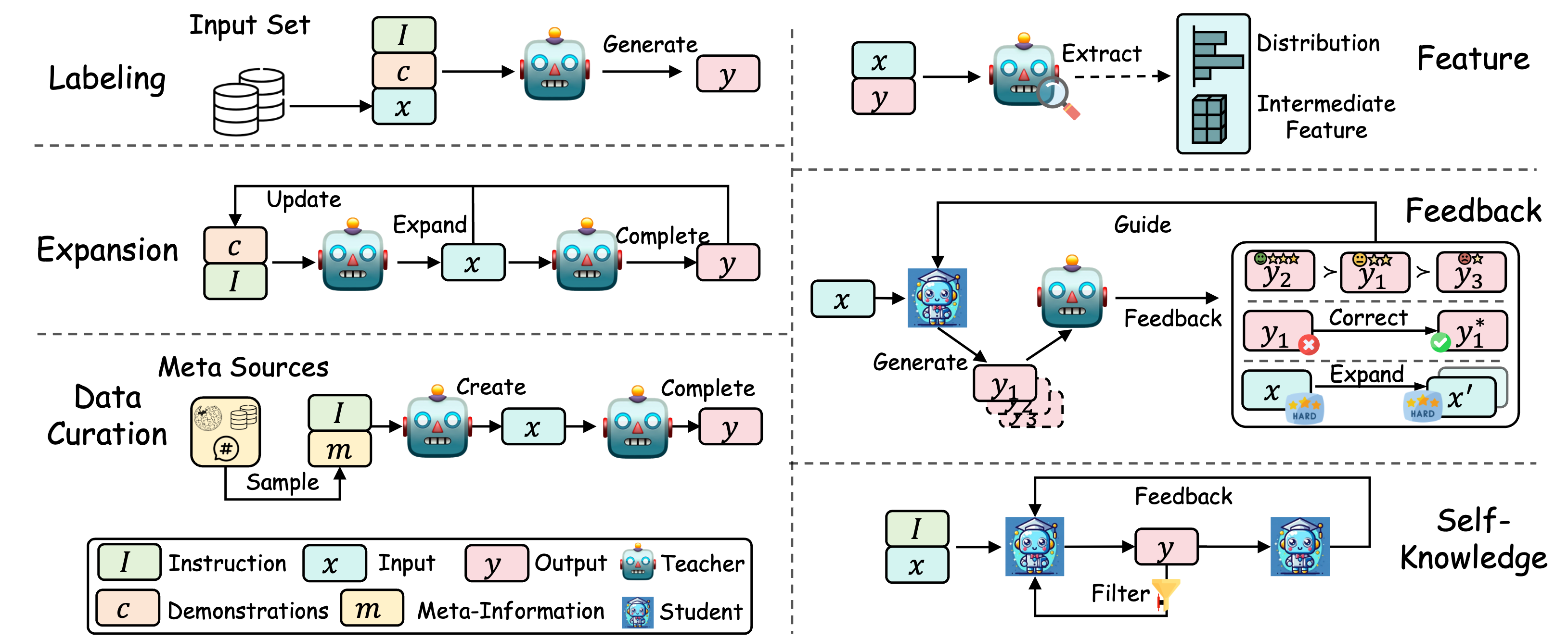 图示:来自教师 LLM 的不同知识提取方法。