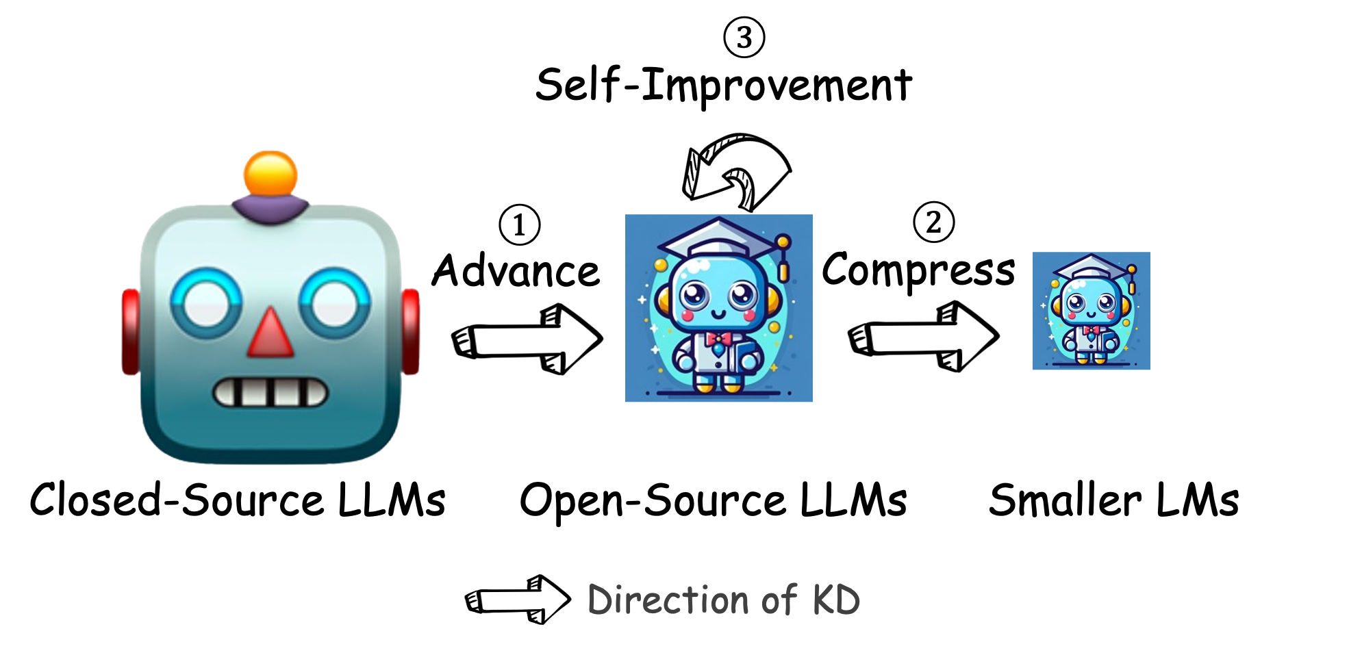 | ③ 自我改进 | 利用开源 LLM 自身的知识进行优化,即所谓的“自我蒸馏”。 | 是当前使开源 LLM 更具竞争力的新趋势 |