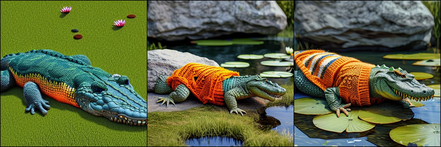 原始提示词:穿着毛衣的鳄鱼