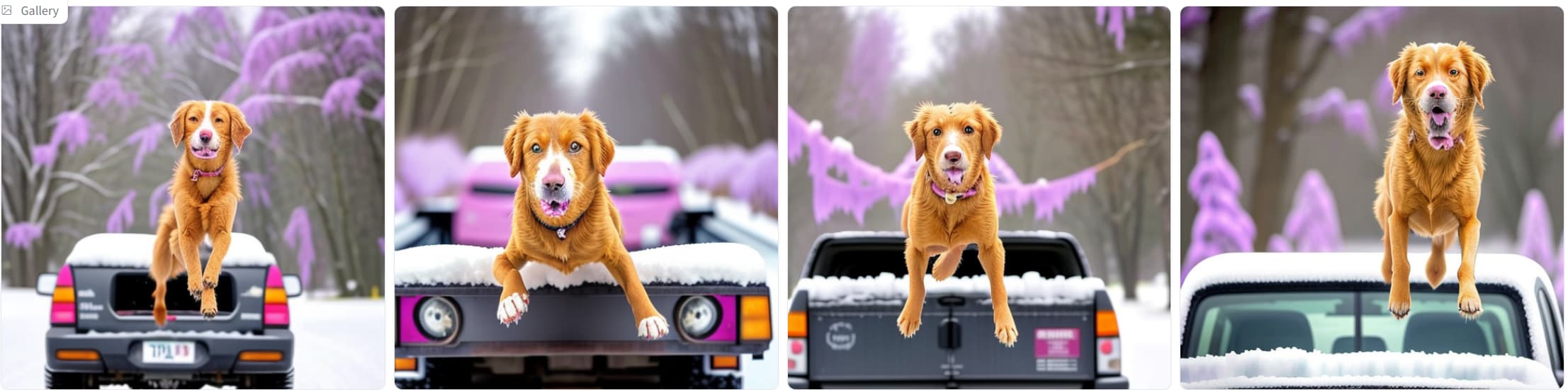 | 一只狗在雪天跳过一辆汽车 | ![]() |