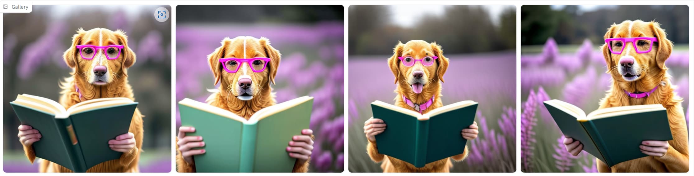 | 一只戴着粉红色眼镜的狗正在看书 | ![]() |