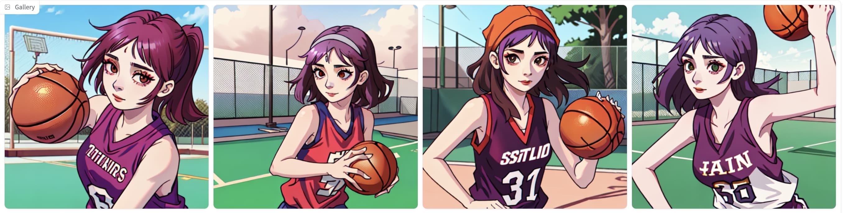 | 一位女士身穿无袖球衣,在室外球场上打篮球。 | ![]() |